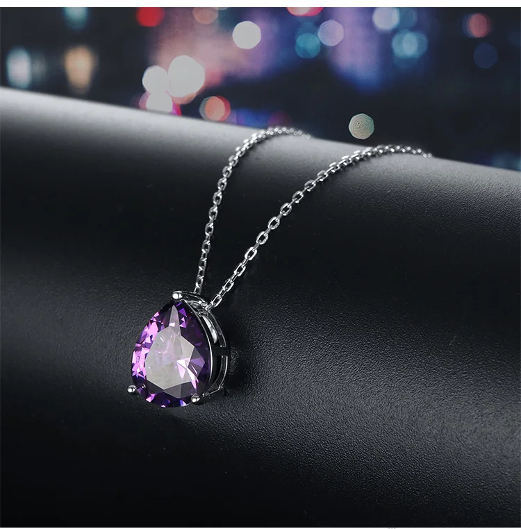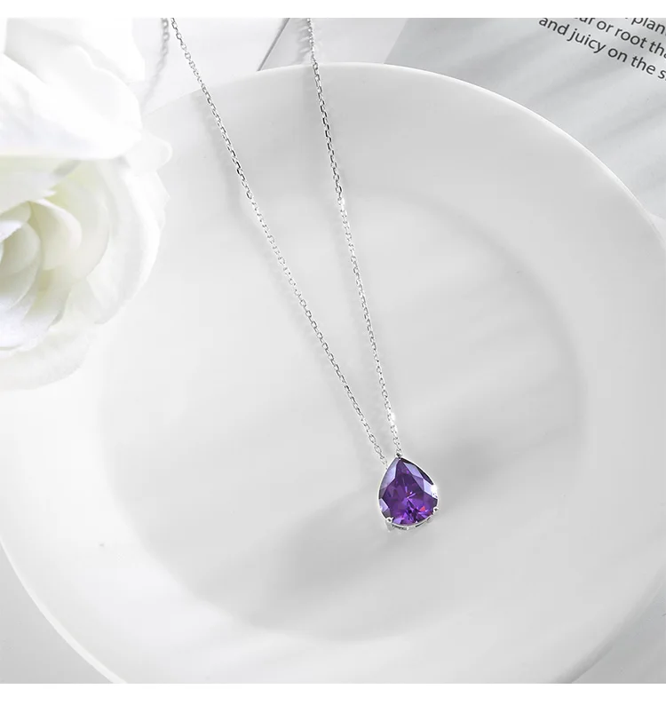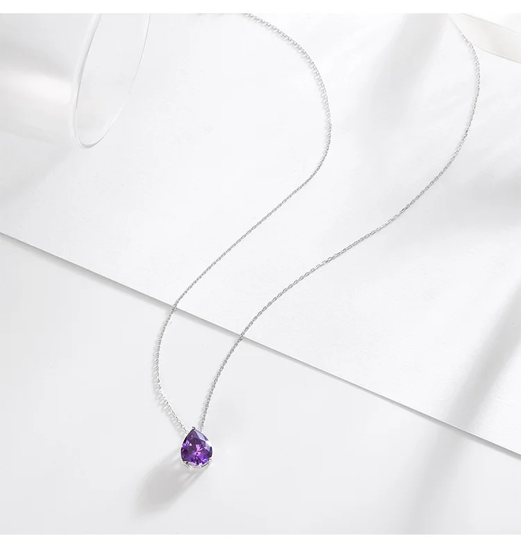 Real sterling silver necklaces 925 for women chain December birthstone cubic zirconia necklace Amethyst collar pendant jewelry