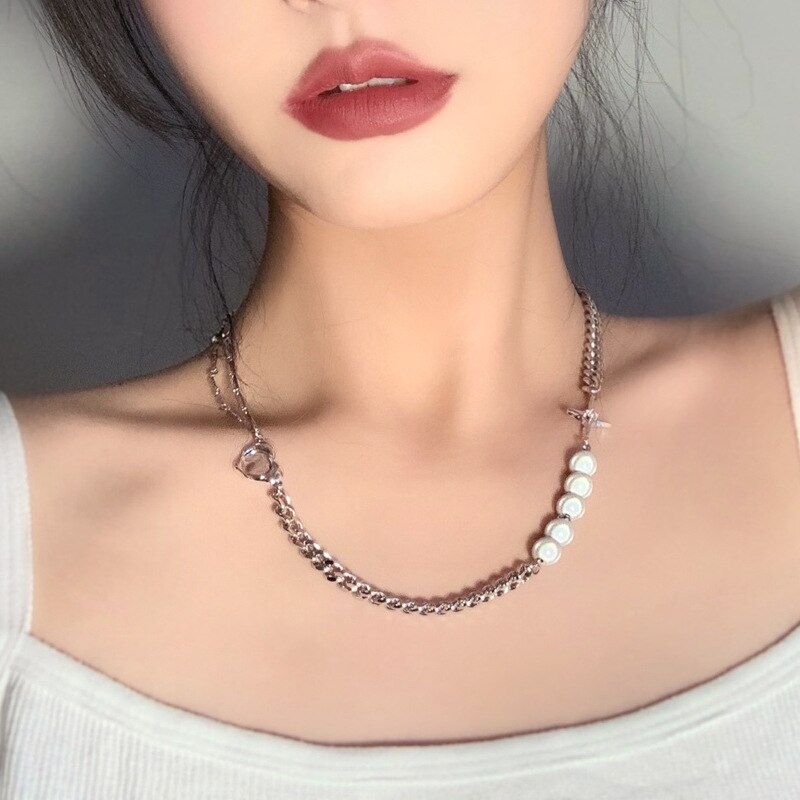 Reflective pearl stitching women : Female hip-hop clavicle chain
