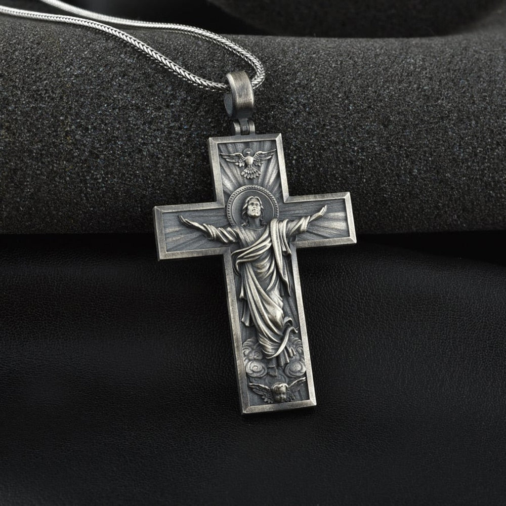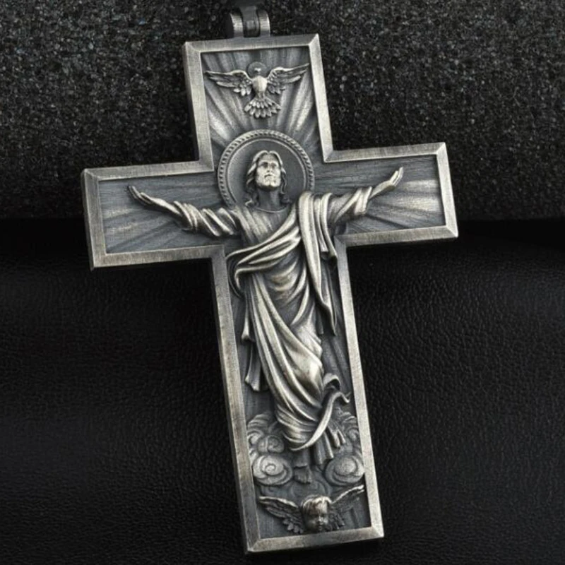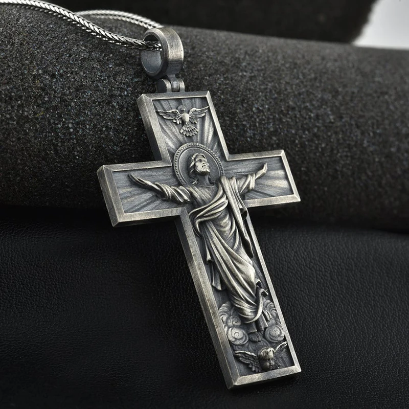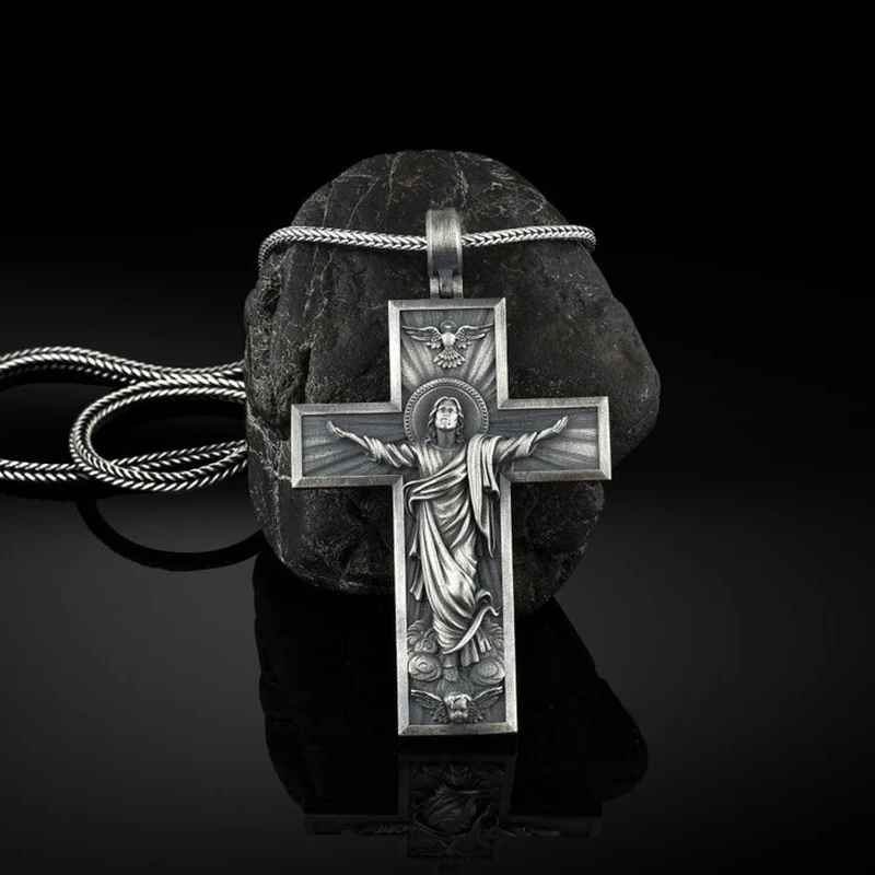 Religious Jesus Cross Christian Catholic Retro Style Pure Tin Men's and Women's Pendant Necklace Jewelry