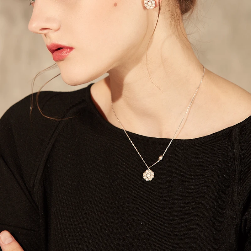 Retro 925 Sterling Silver Sunflower Cultural Pearl Beads Choker Necklaces Women Flower Pendant Jewelry Collares zk40