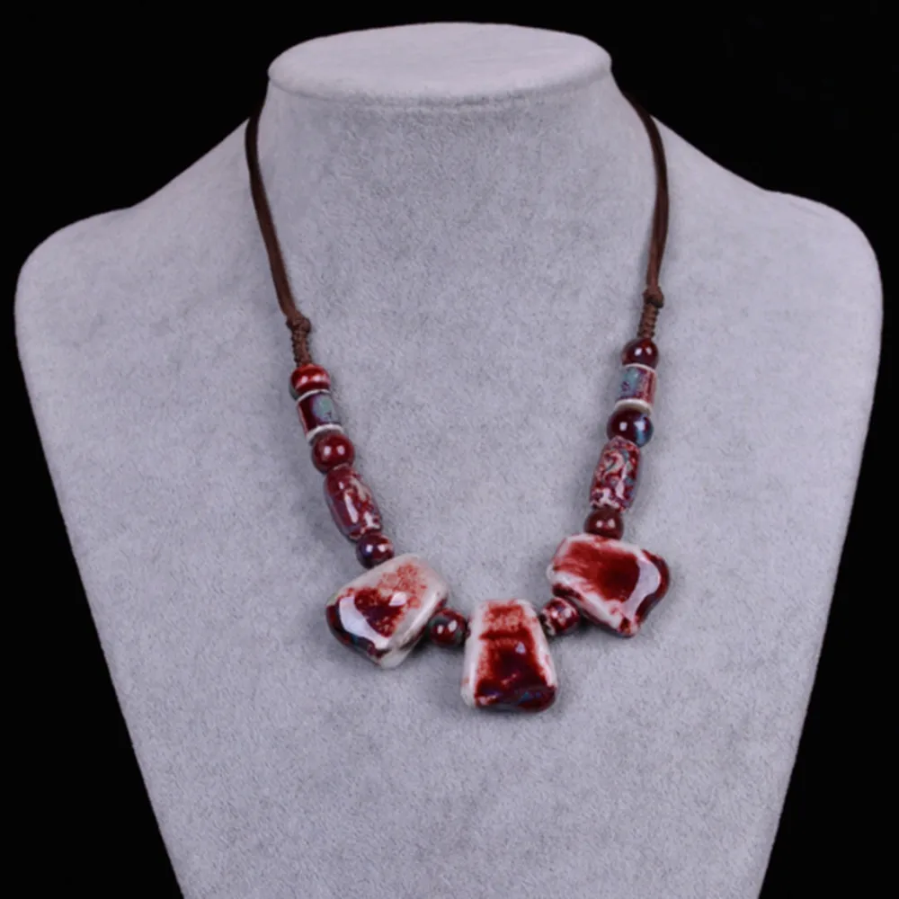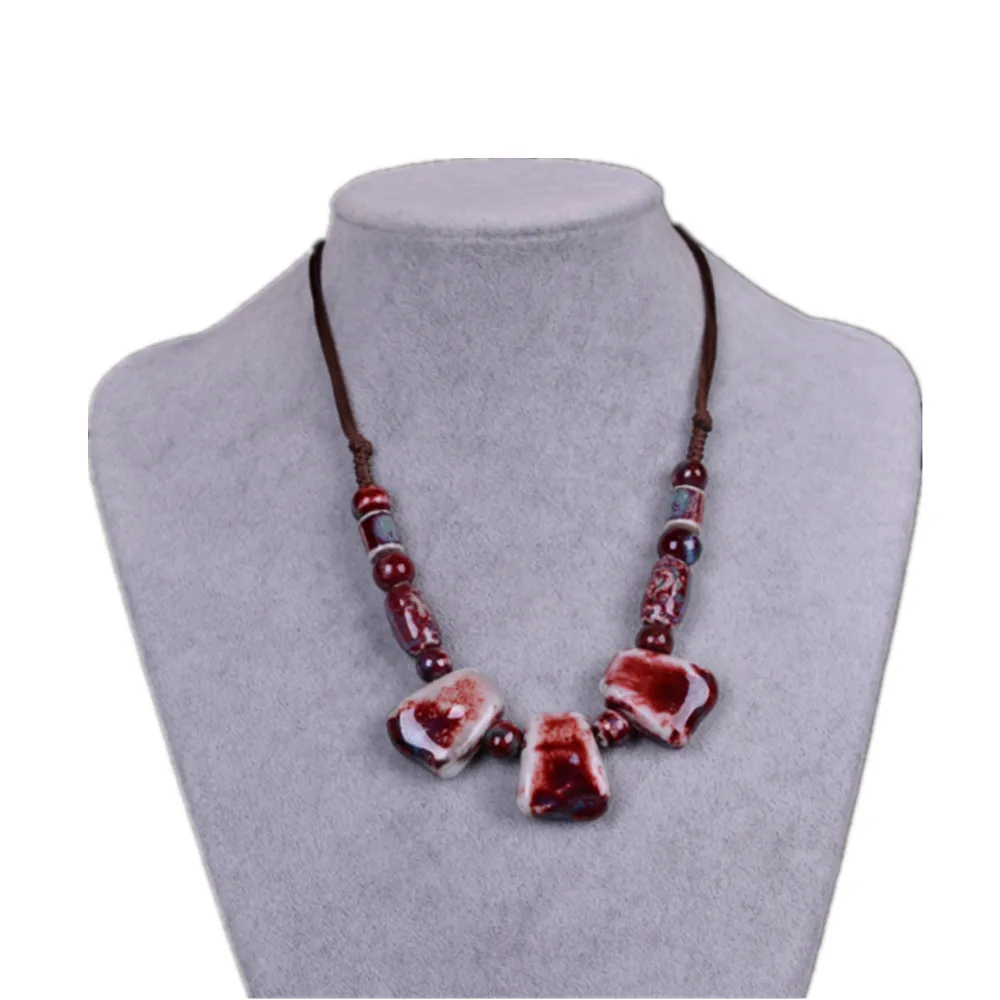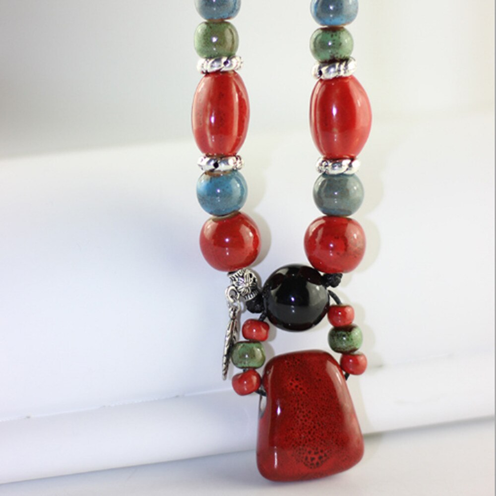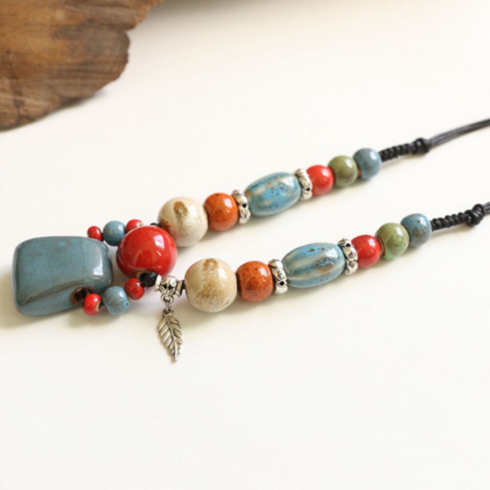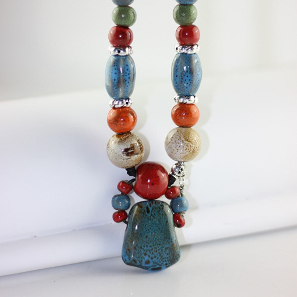 Retro beautiful ethnic style Handmade ceramic Beads pendant necklace N418