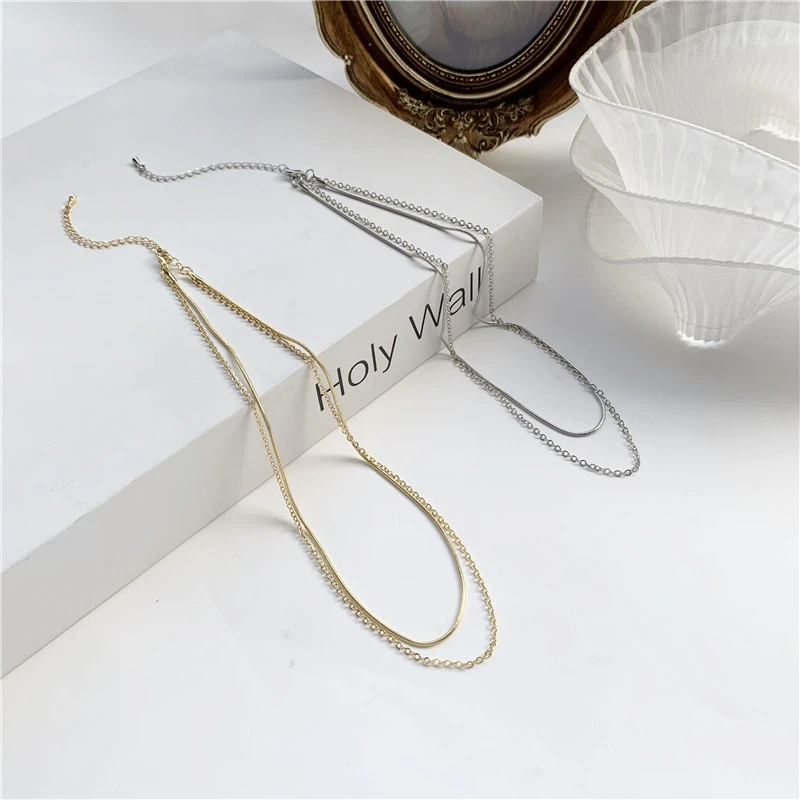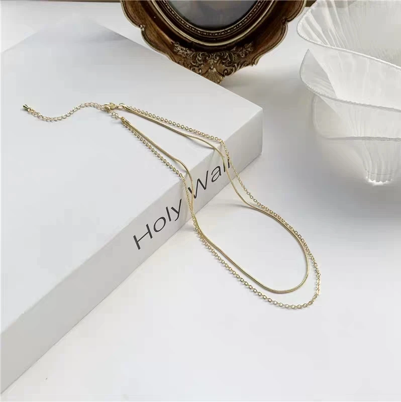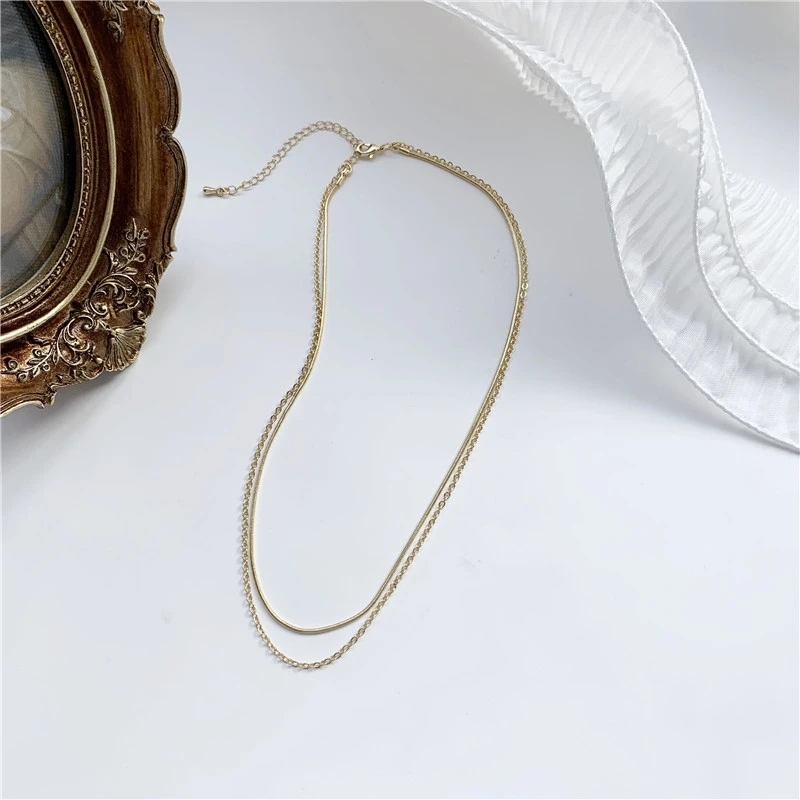 Retro Double Necklaces Women's Simple Gold Multi-Layer Clavicle Collar Bohemian Temperament Charm Accessories Necklace