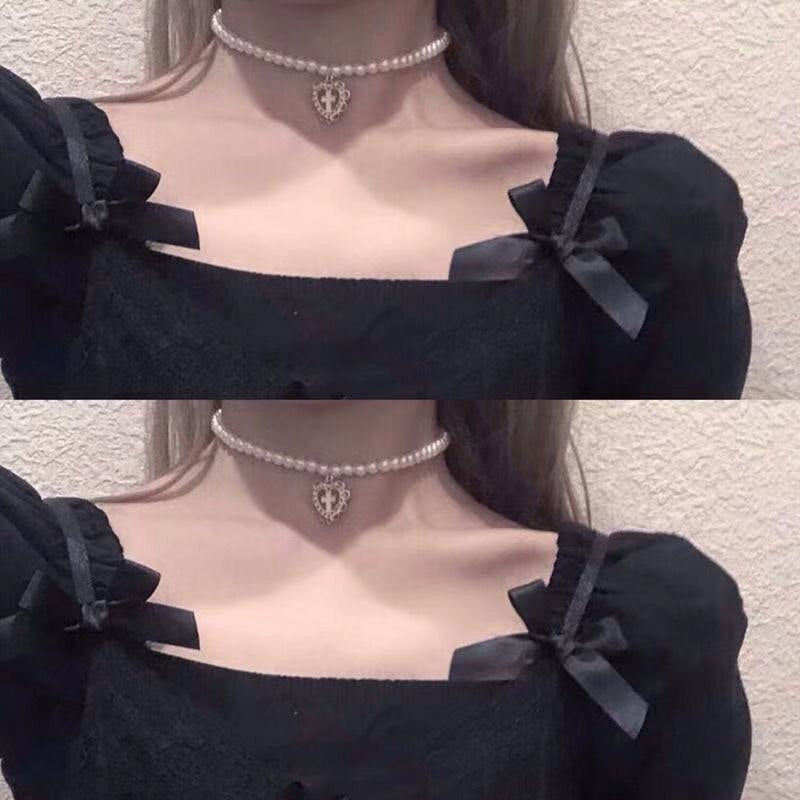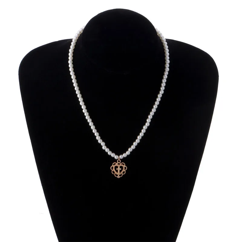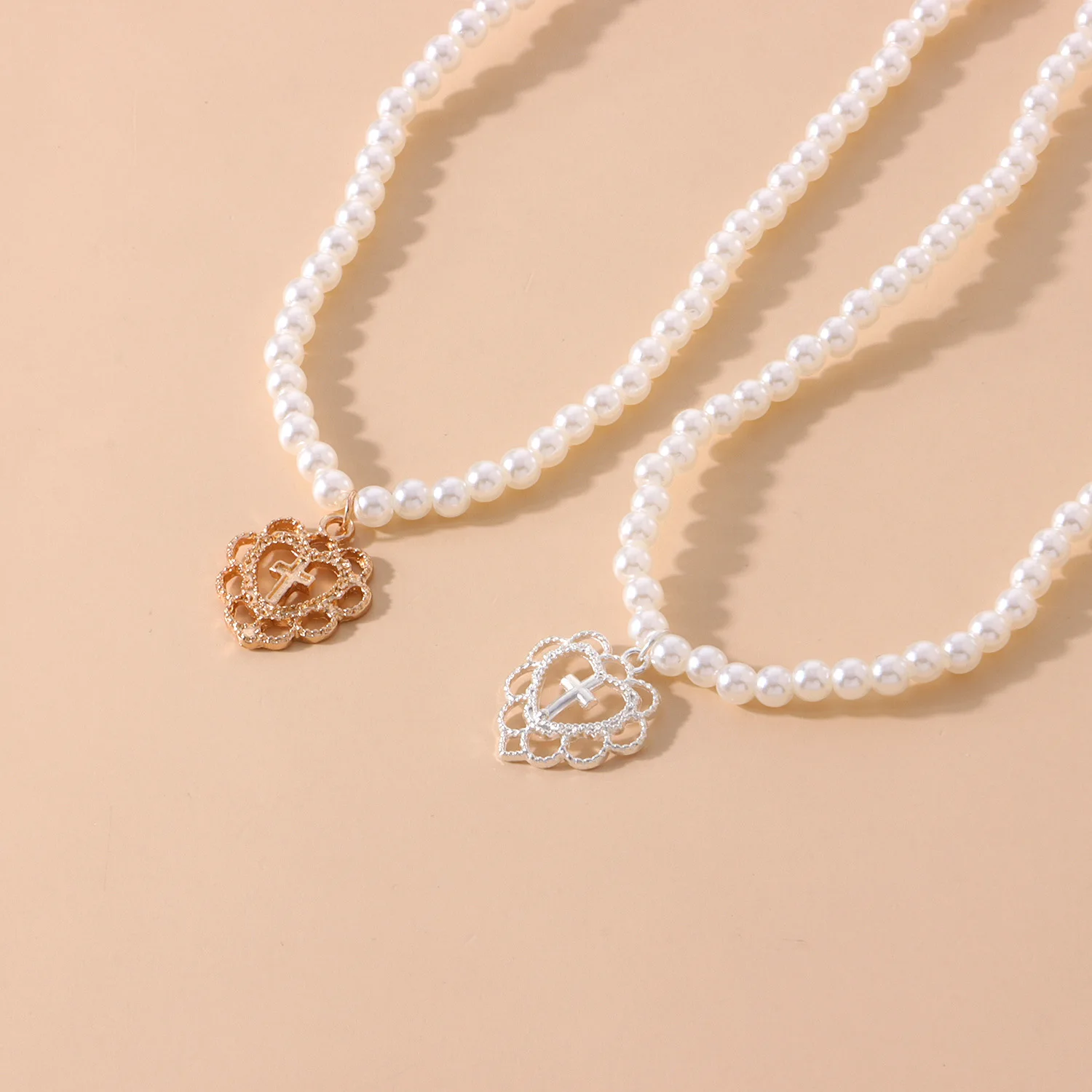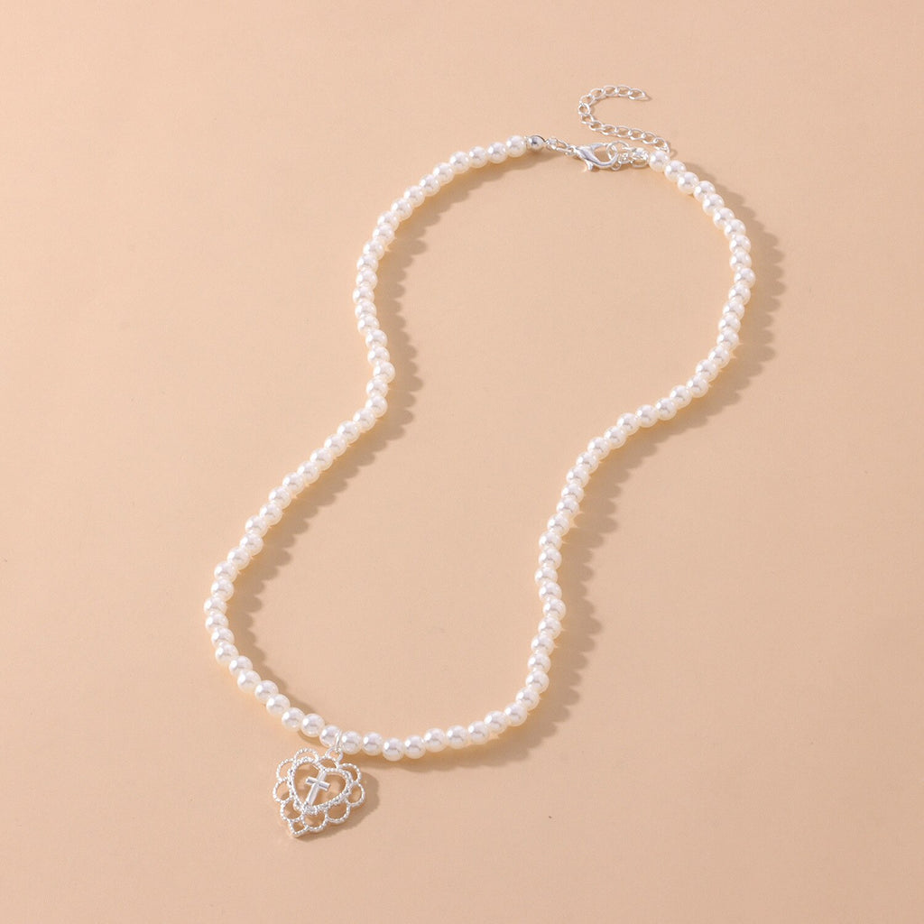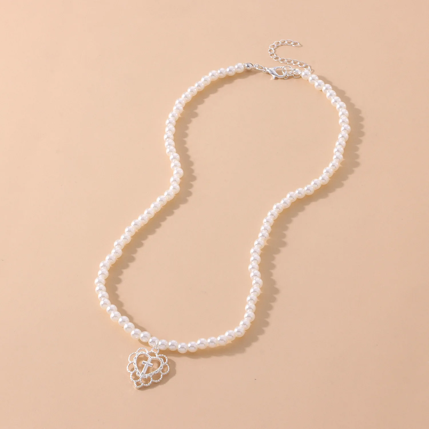 Retro Girl Palace Hollow Love Cross Pendant Pearl Necklace Chocker Clavicle Chain Necklace Jewelry for Women Beads 2021