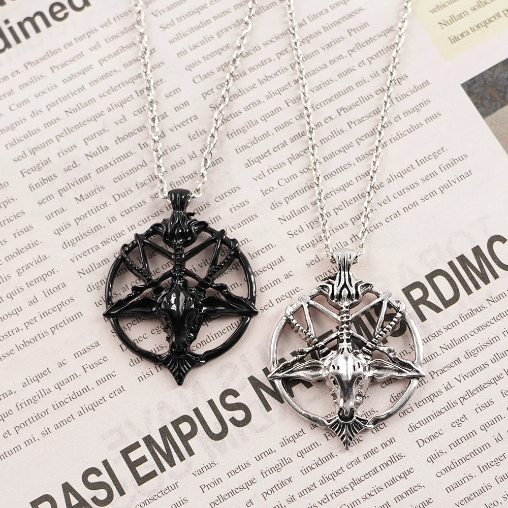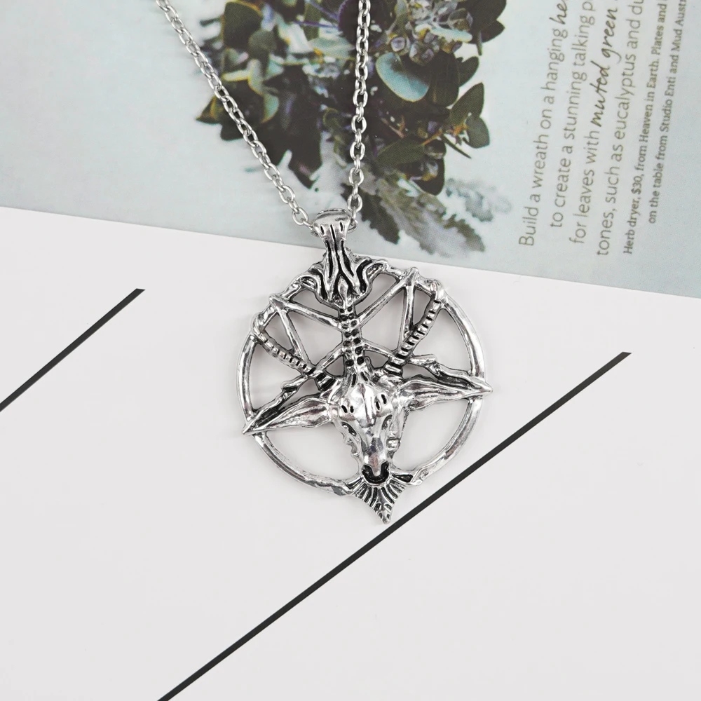 Retro Pentagram Pan God Skull Goat Head Pendant Necklace Luck Satanism Occult Metal Vintage Silver Plated Star Necklace
