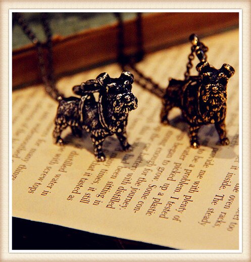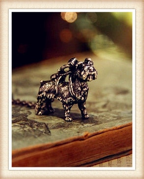 Retro Schnauzer Dog necklace punk animal pet Pendant jewelry Antique Silver/bronze/gun black plate