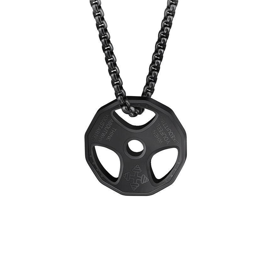 Retro Titanium Stainles Steel Fitness Gym Necklace Weight Plate Barbell Weightlifting Bodybuilding Exercise Jewelry