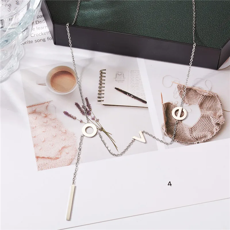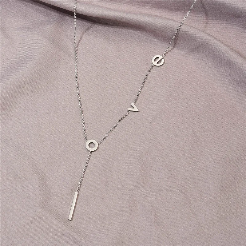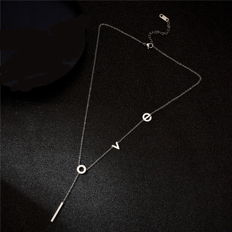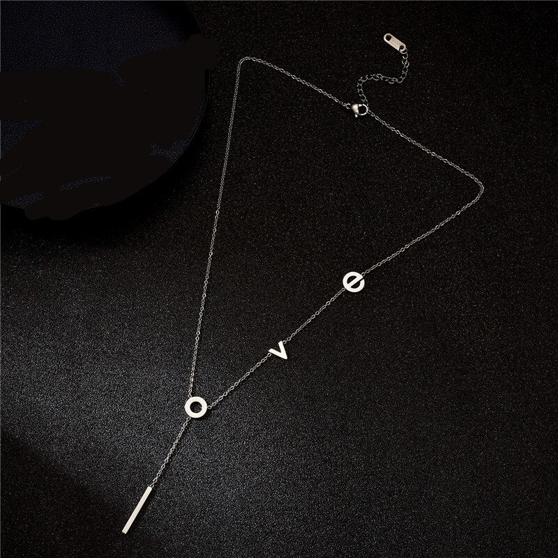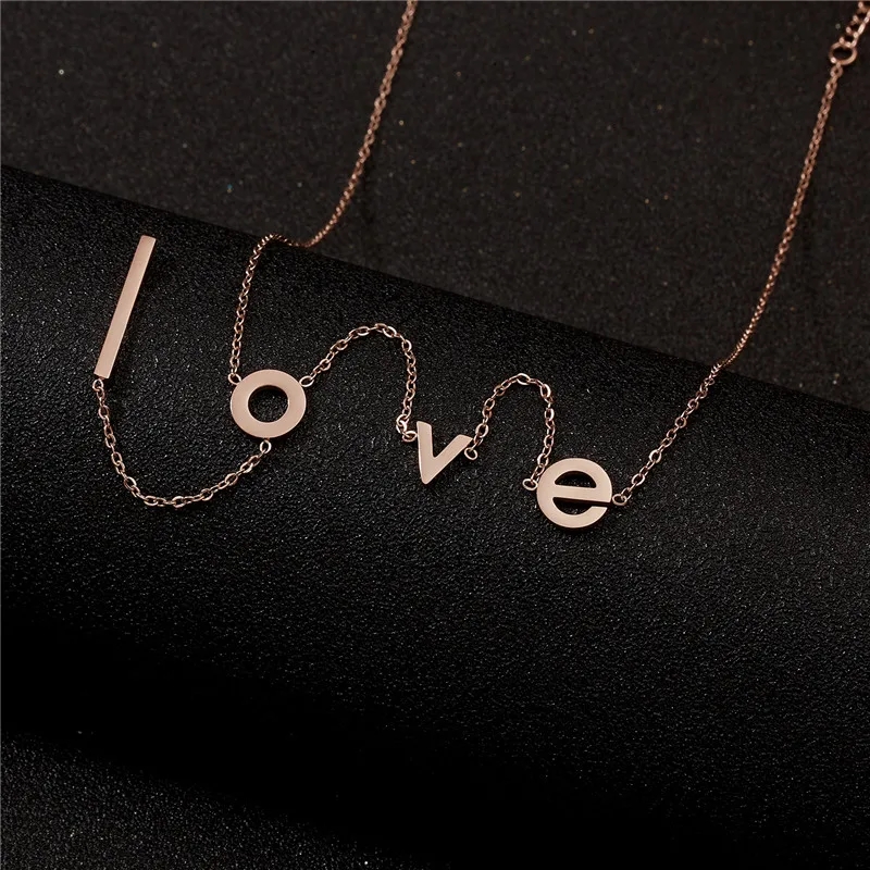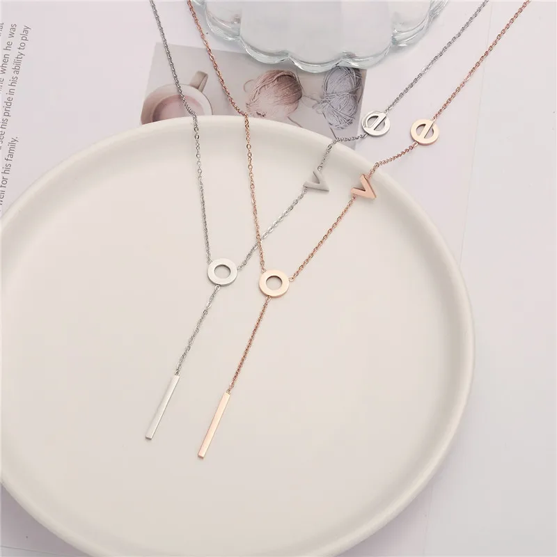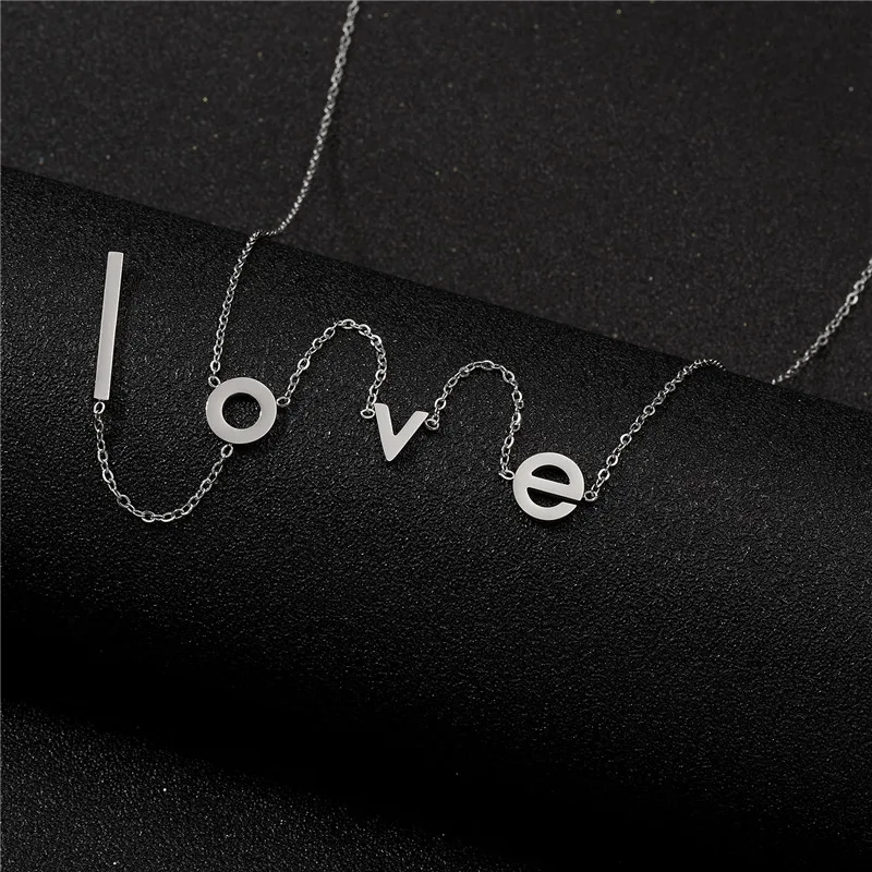 Rinhoo Stainless Steel love Letter Necklace Simple Clavicle Necklace For Women Girls Jewelry Birthday Gift