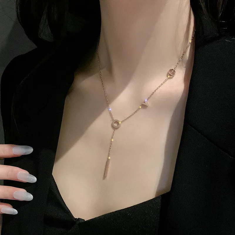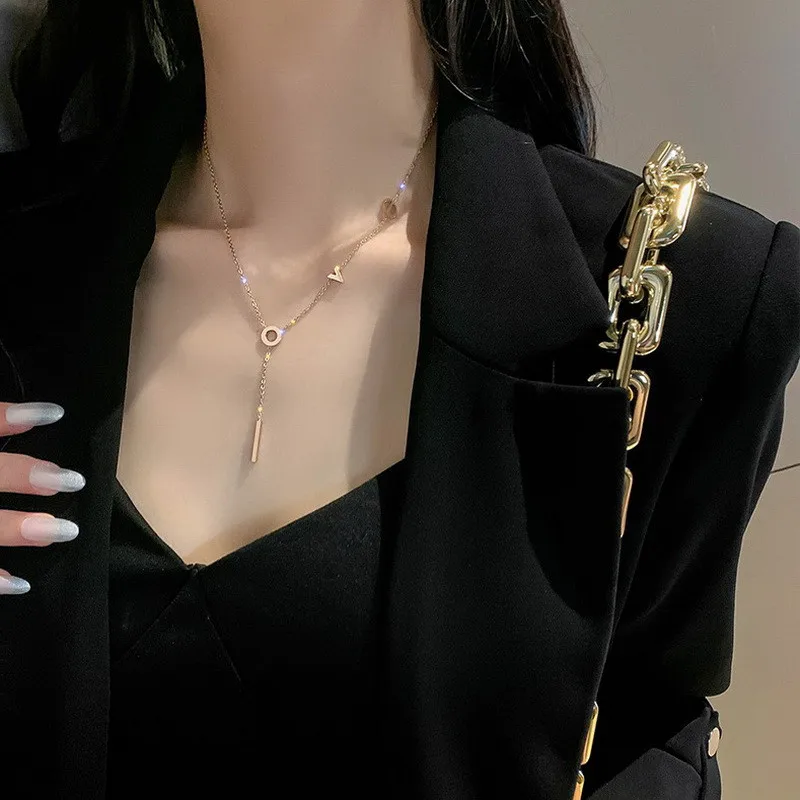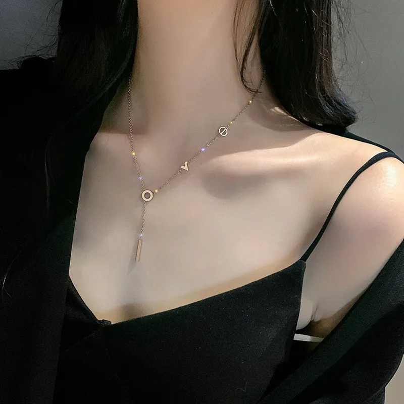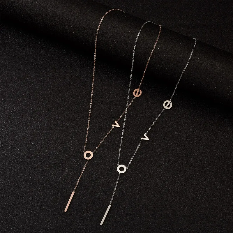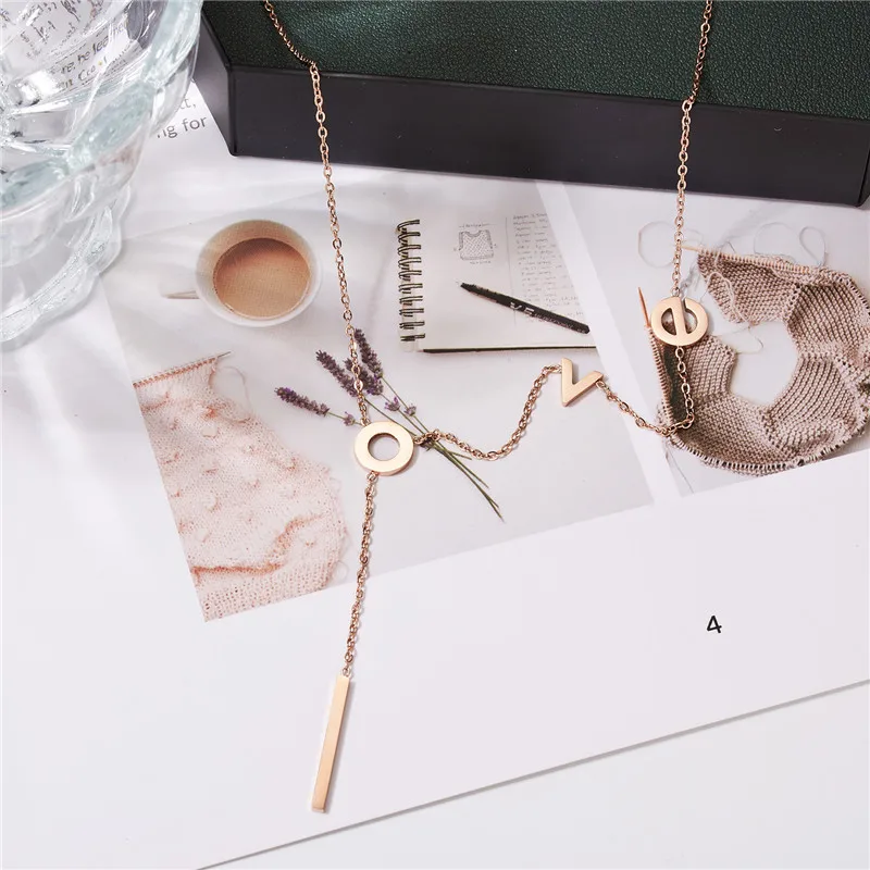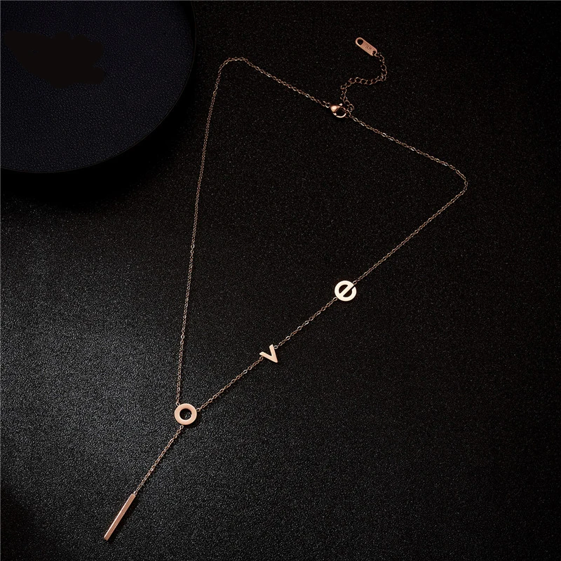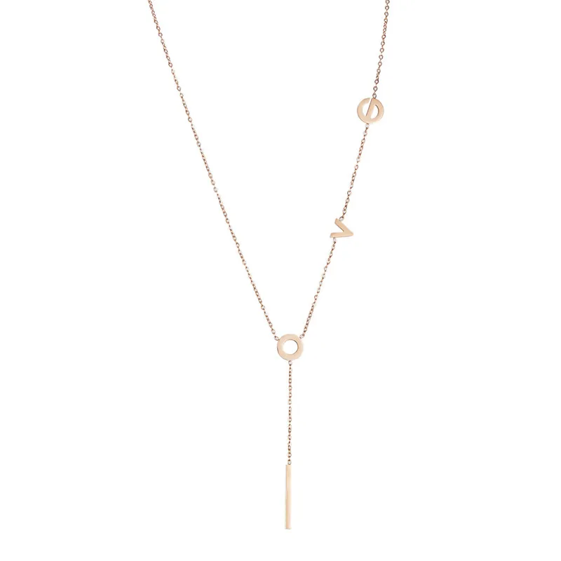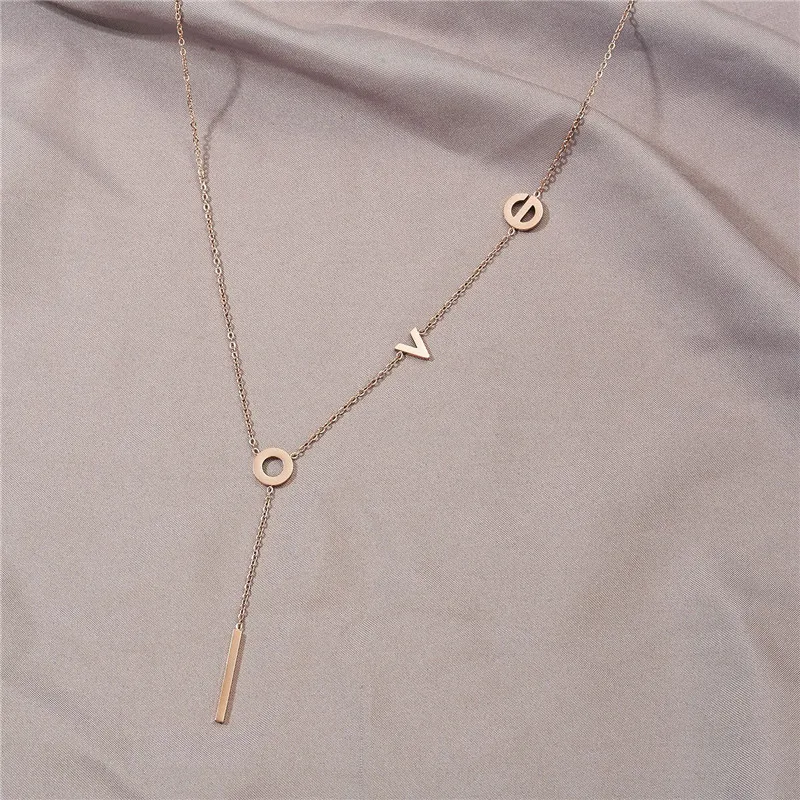 Rinhoo Stainless Steel love Letter Necklace Simple Clavicle Necklace For Women Girls Jewelry Birthday Gift