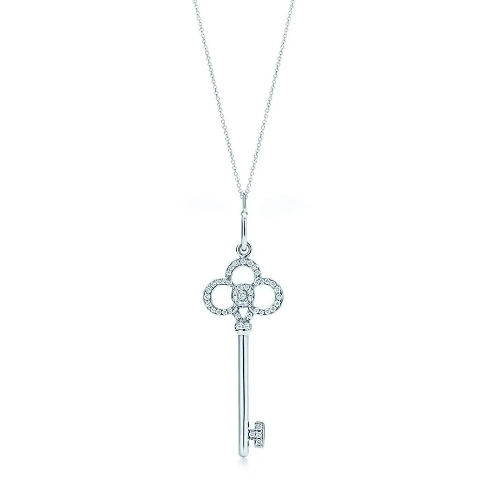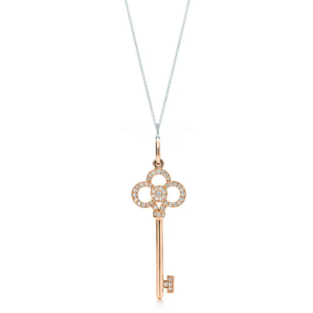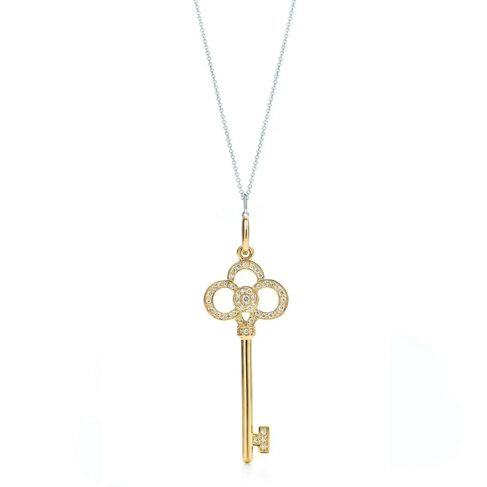ROBOBL Tiff 100% 925 Sterling Silver Genuine Zircon Heart-shaped Keyring Pendant Necklace 18K Yellow Gold, Golden Rose, Gold KEY