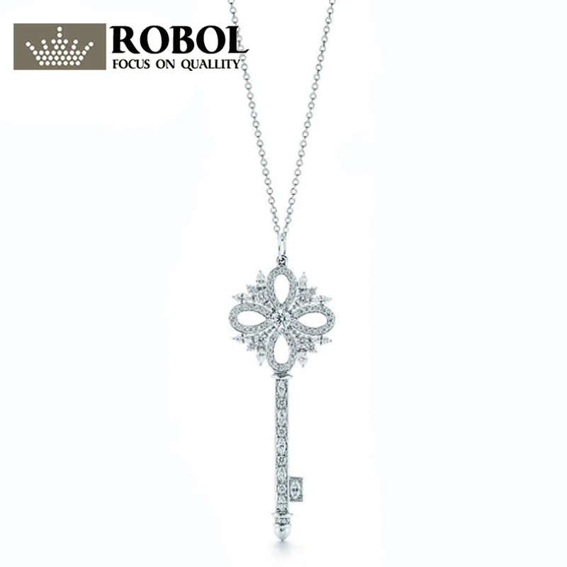 100% 925 Sterling Silver New Stylish Temperament Hollow Elegant Key Necklace Lady Charm Key Clavicle Chain