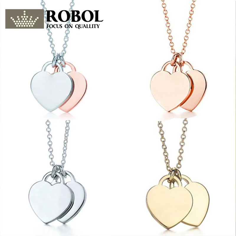 100% Double Heart Lock Pendant in Sterling Silver Gold Color Rose Gold Necklace Clavicle Chain Girl Gift