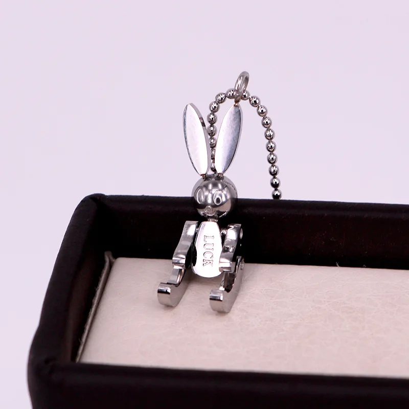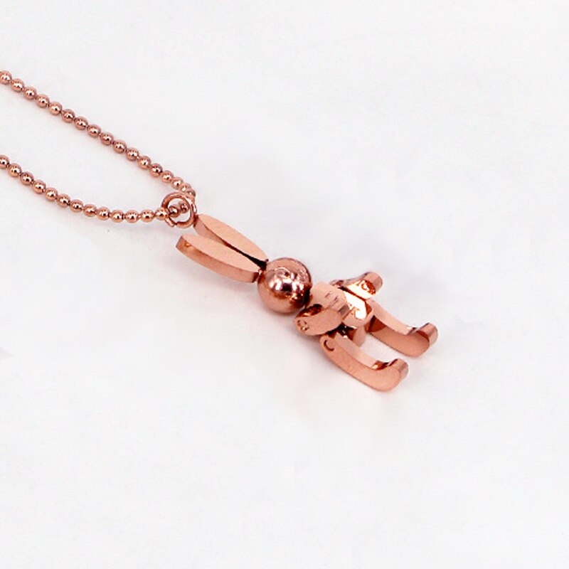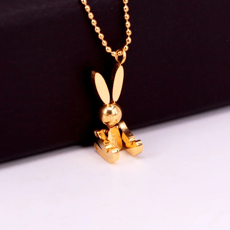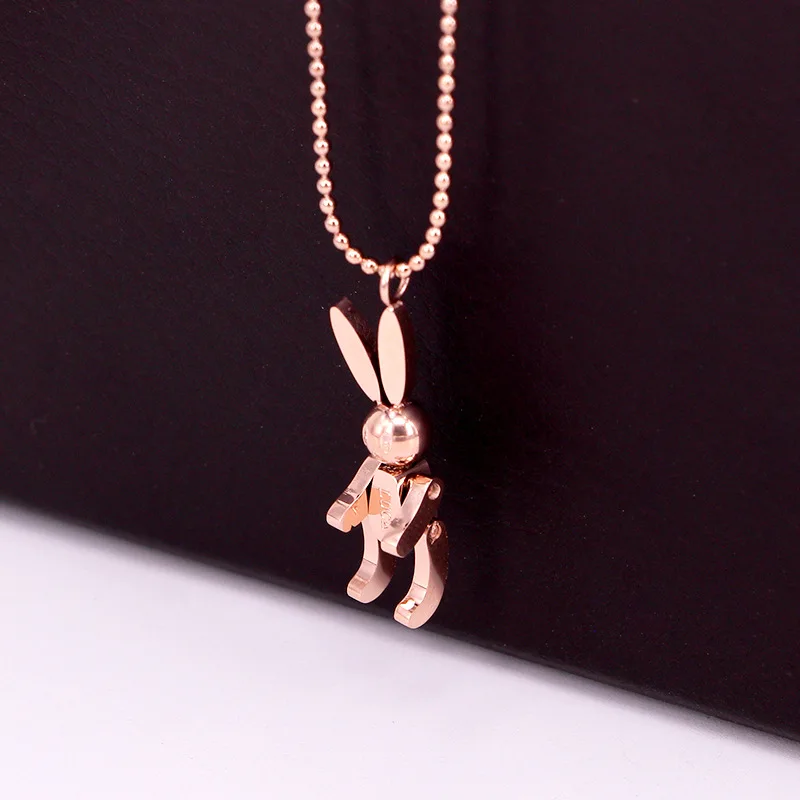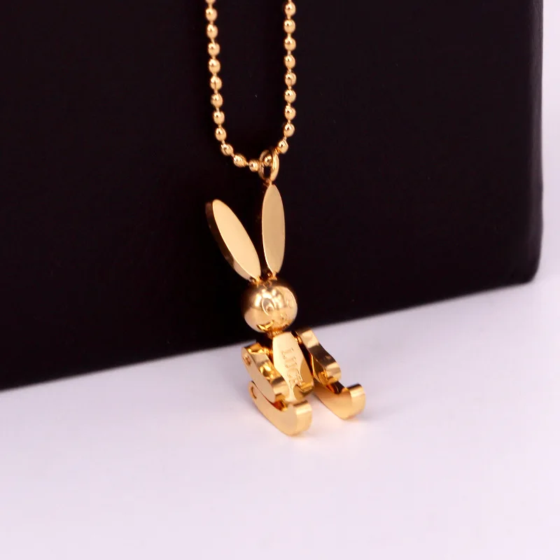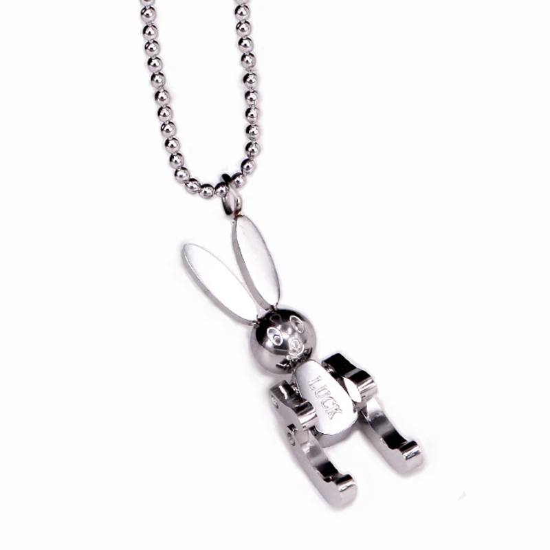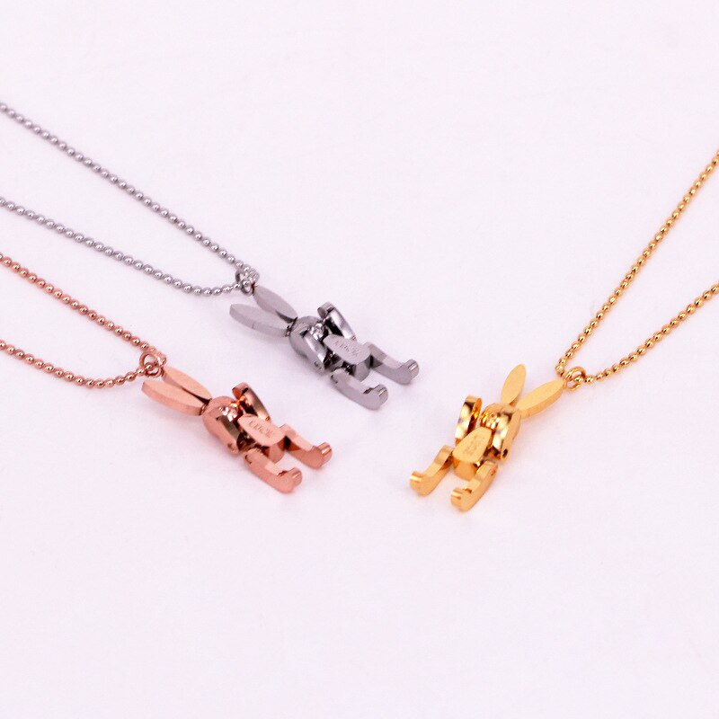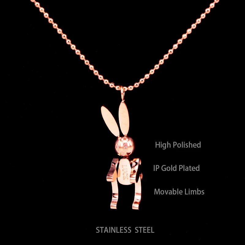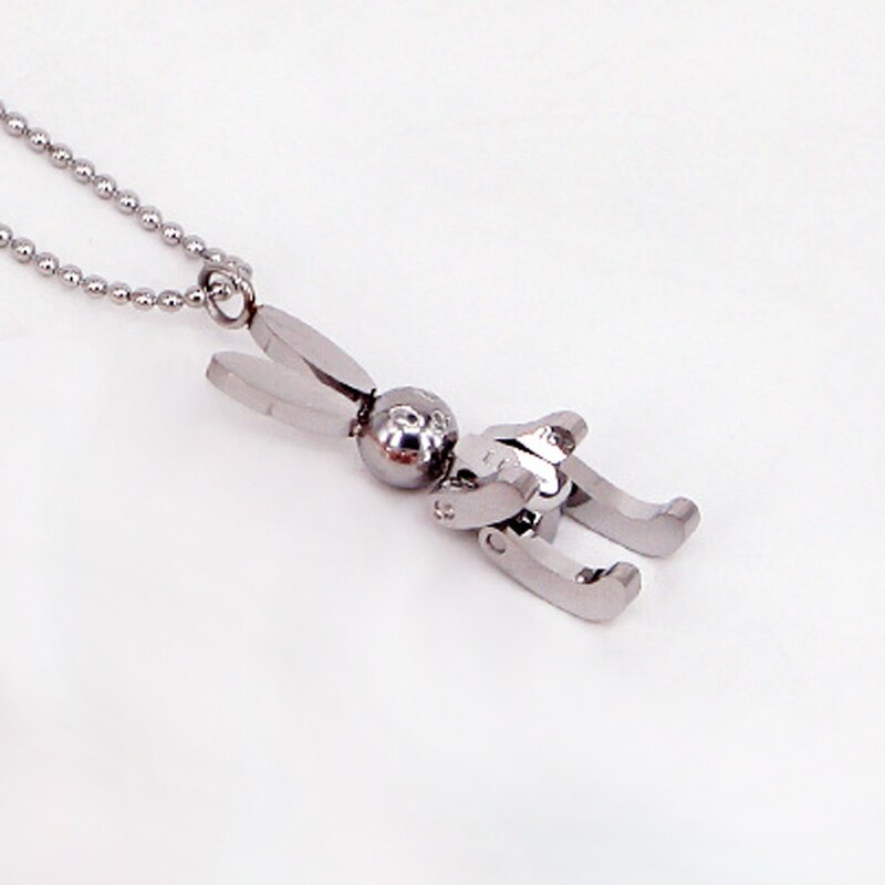 Robot Rabbit Pendant Bunny Necklace Women Stainless Steel Cute Lucky Jewelry Movable Limbs Charm Rose Gold Silver Color Korean