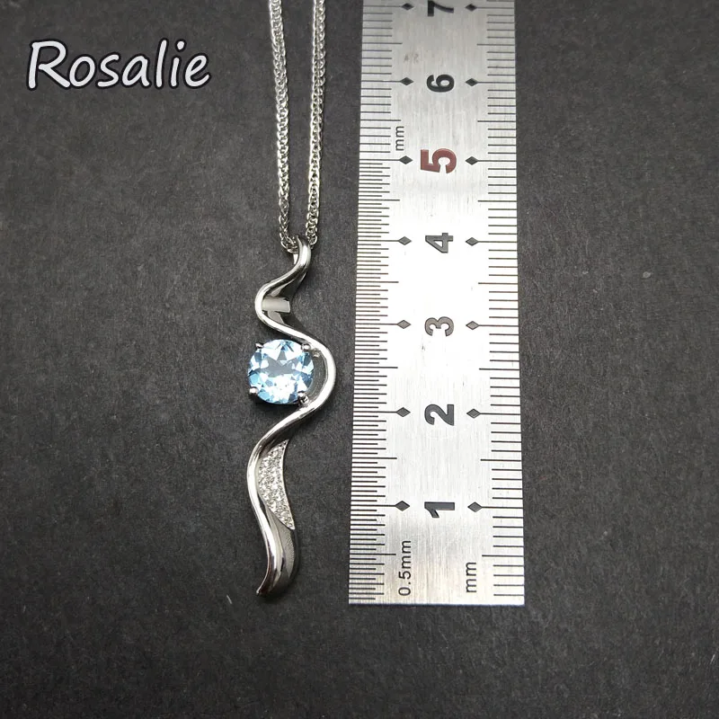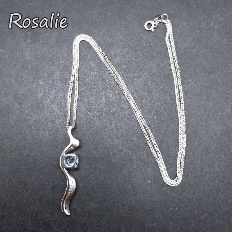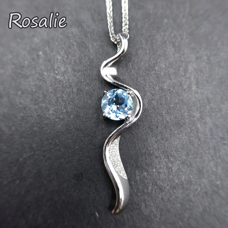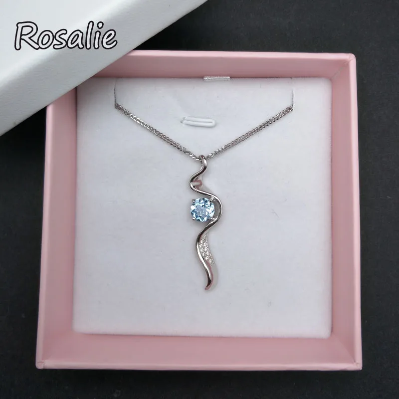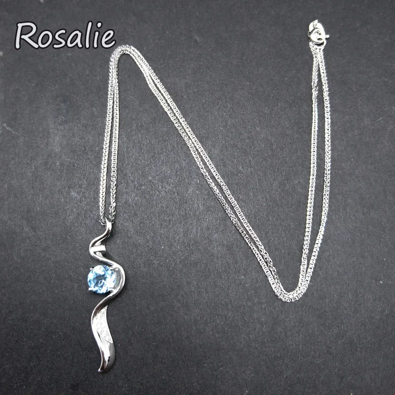Rosalie,Long pendant necklace with natural brazil blue topaz for young fashion girls 925 sterling silver fine jewelry with box