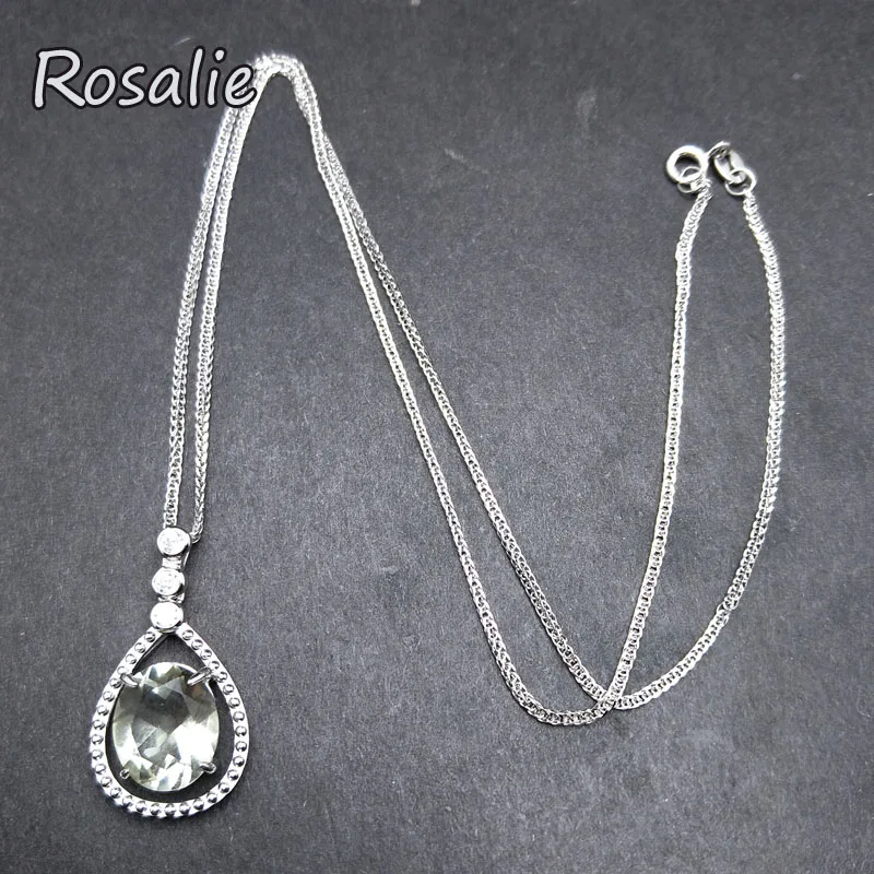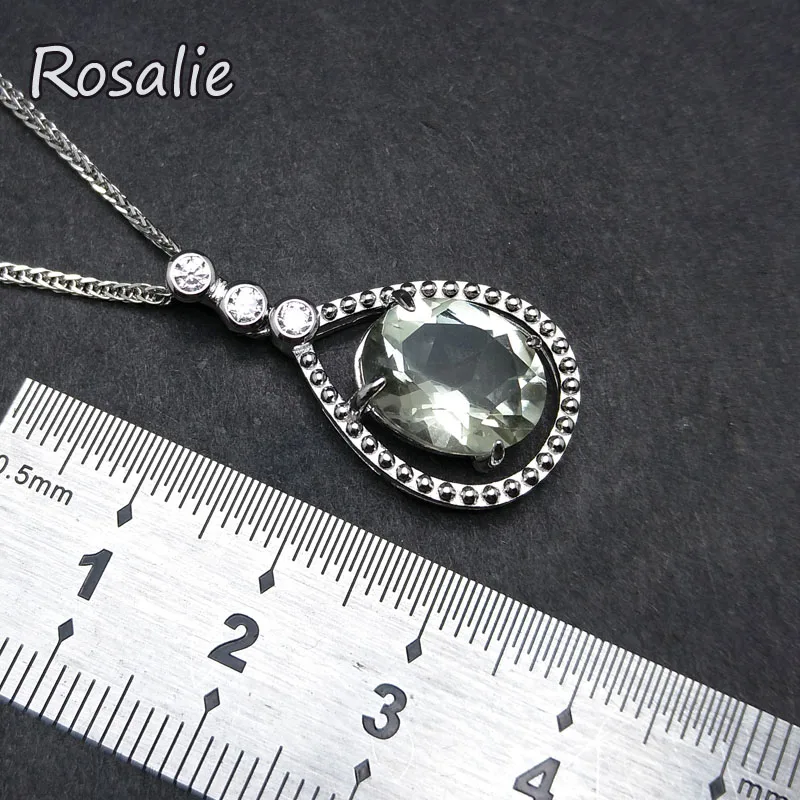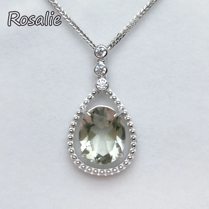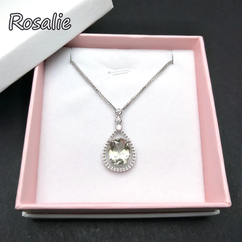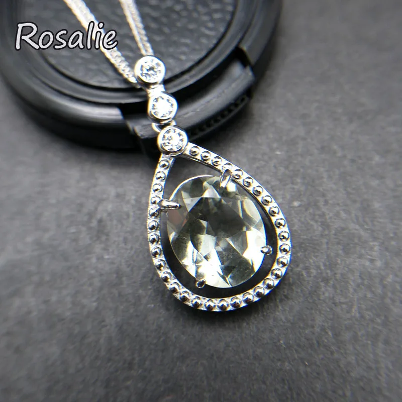 Rosalie,Natural 4.1ct Green amethyst pear drop gemstone pendant classic design 925 sterling silver for girls daily wear gift