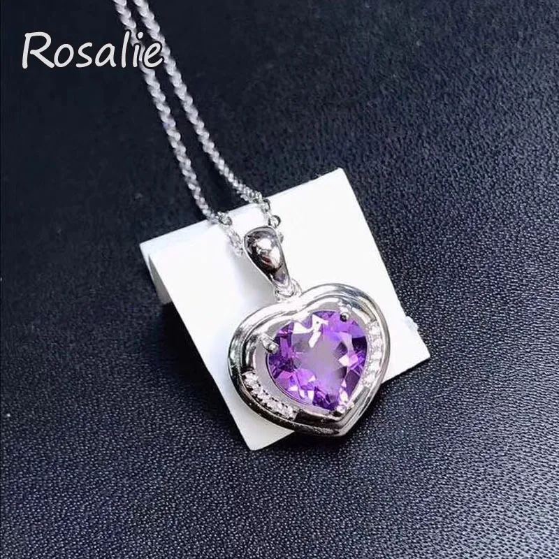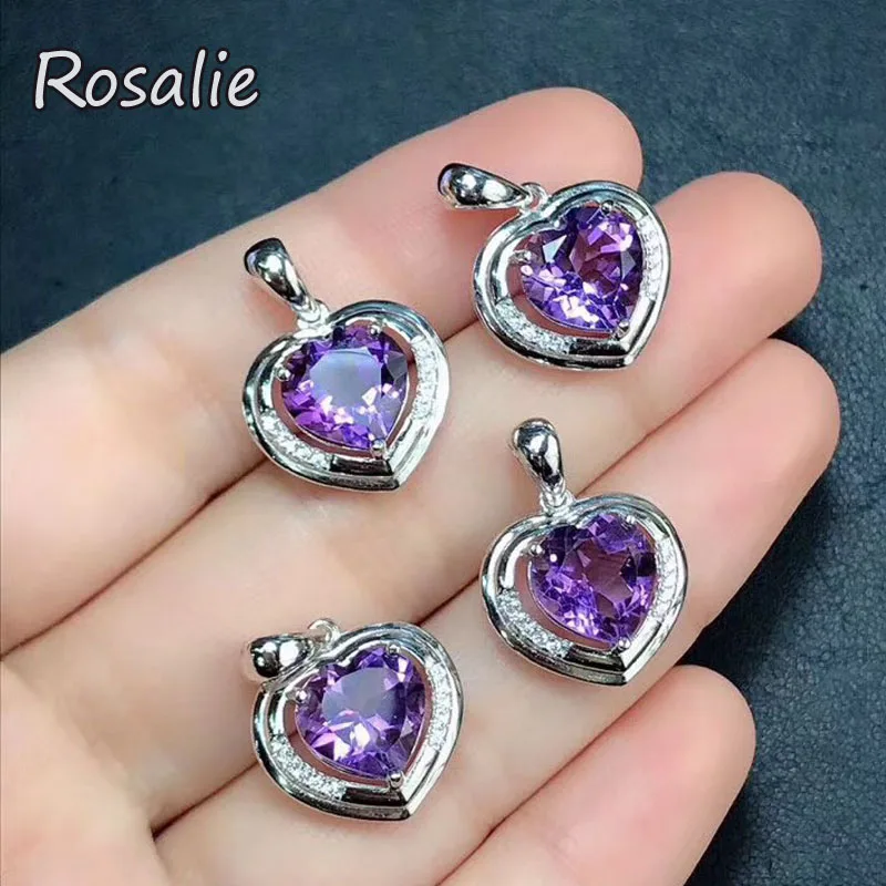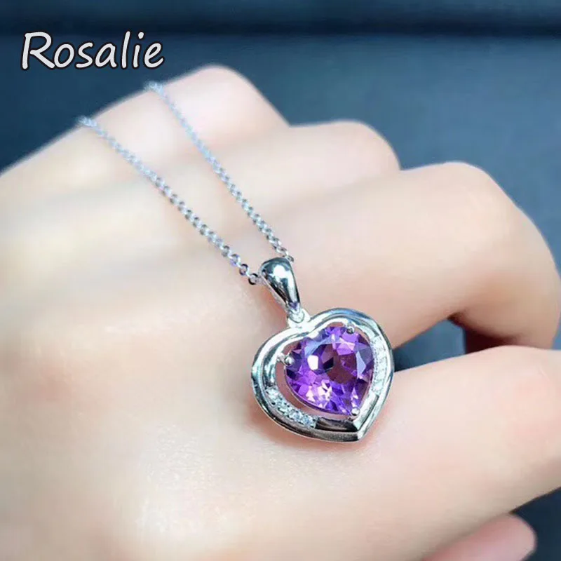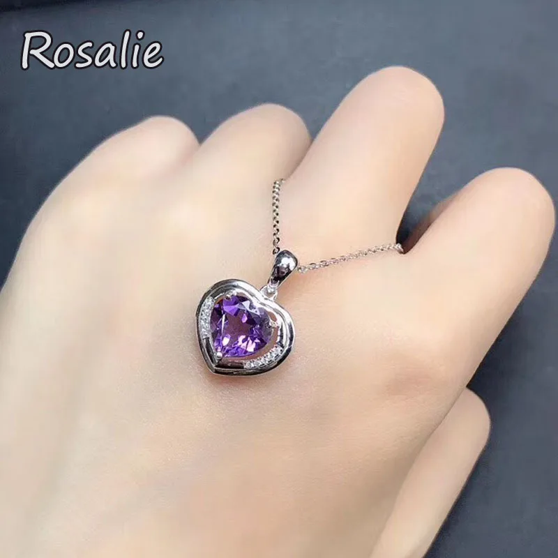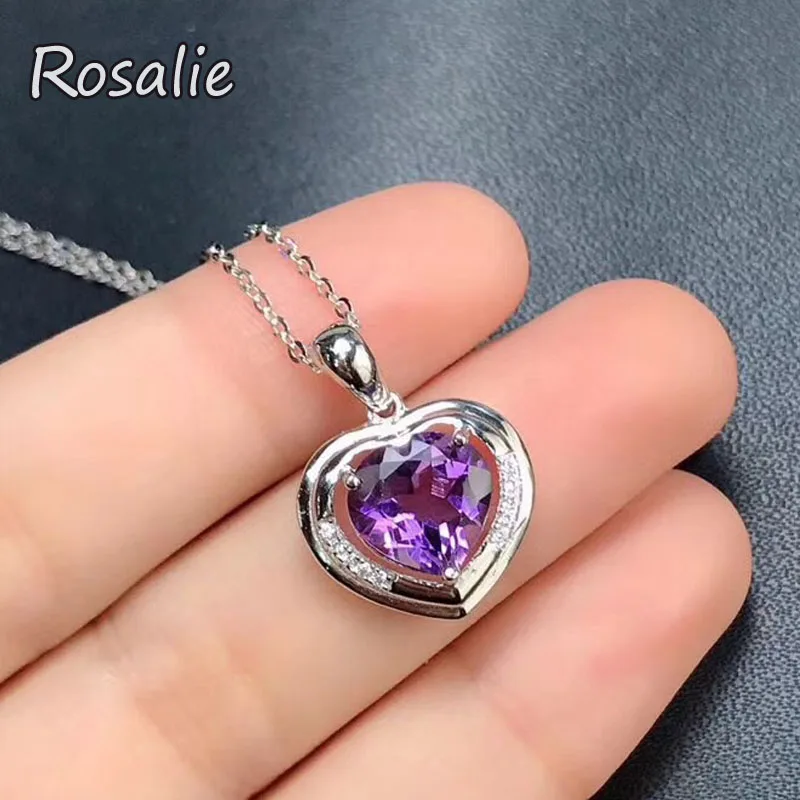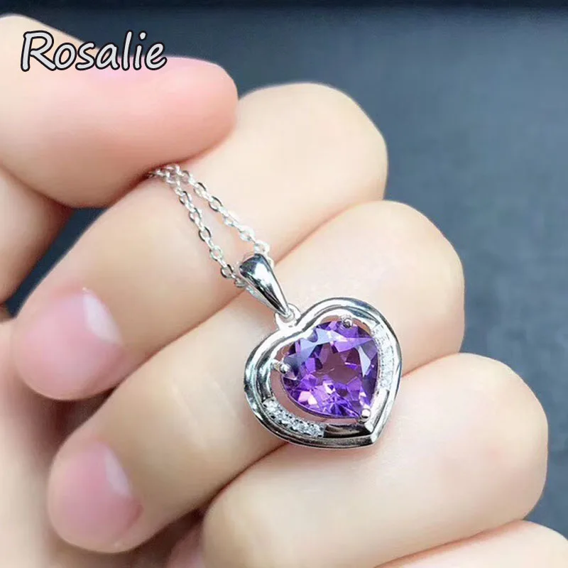 Rosalie,Natural Heart cut 9mm amethyst pendant Genuine Solid 925 sterling silver Fashion Purple Jewelry 2020 new design for gift