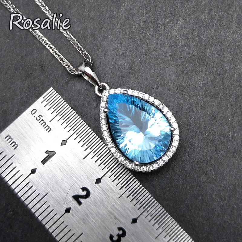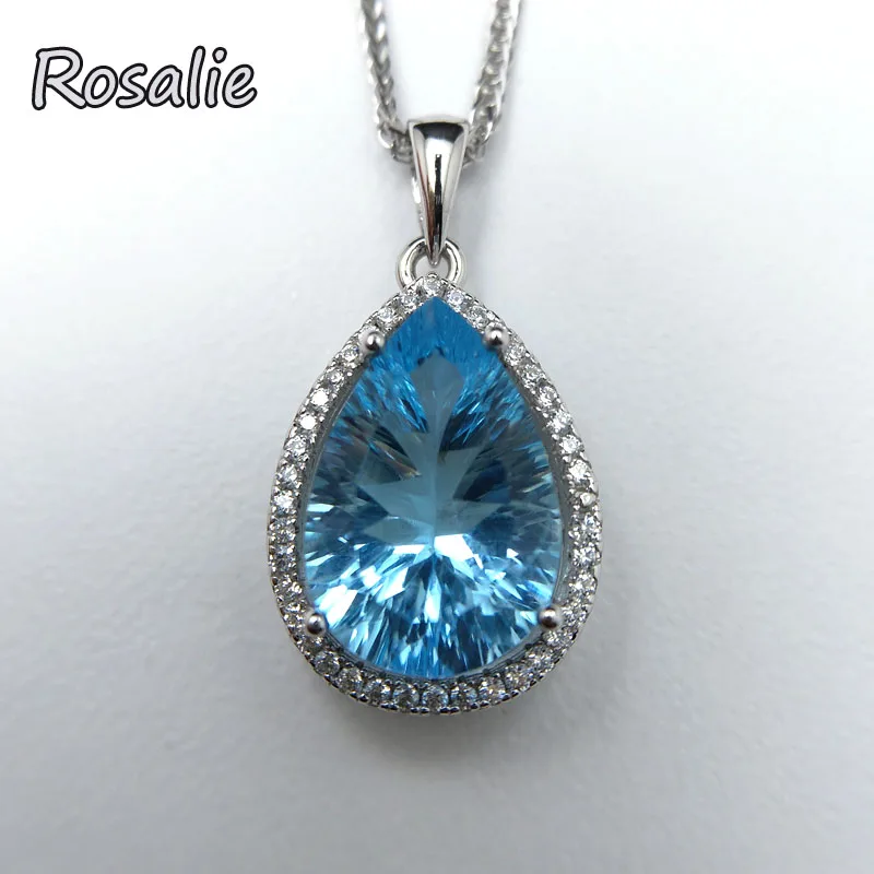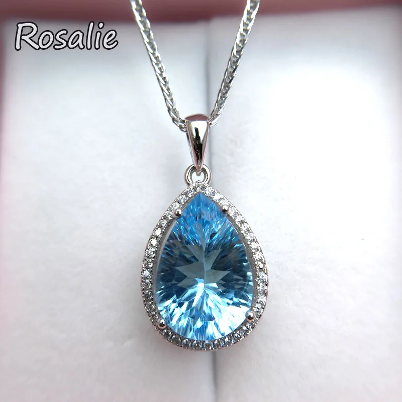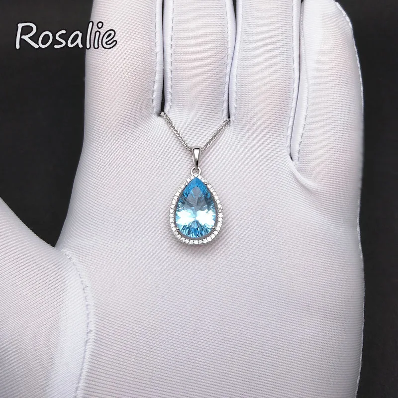 Rosalie,water drop 7ct Natural stone Sky Blue Topaz Pendant pear Cut Solid 925 Sterling Silver Jewelry for women best gift