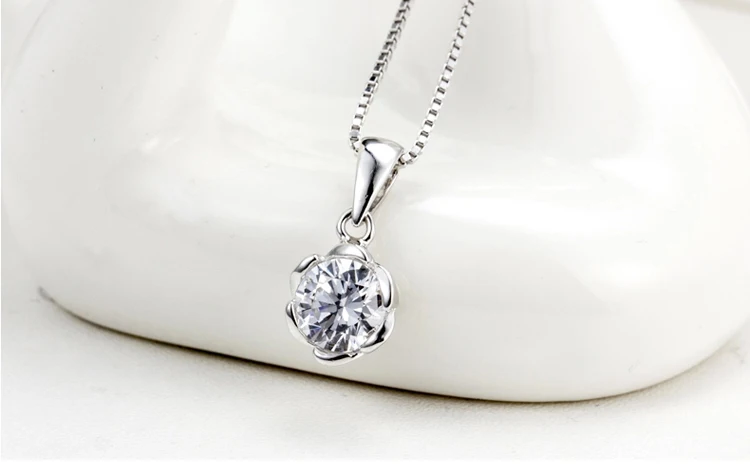 Rose Flower Crystal Pendant Necklace for Women Lady Female Korean Jewelry Accessories