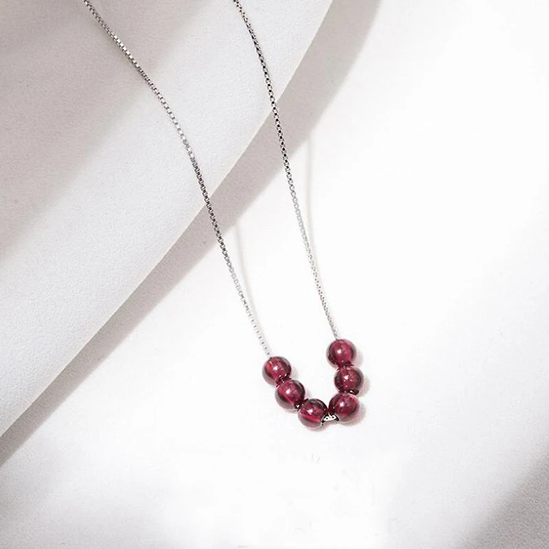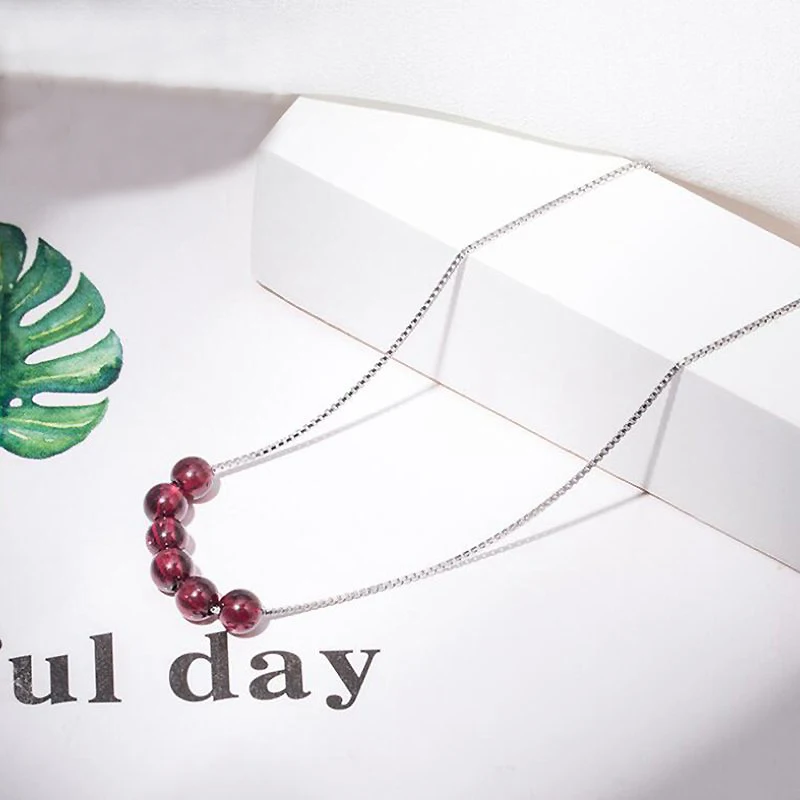 Natural Garnet Beads Gemstone Genuine 925 Sterling Silver Pendant Necklace Women Choker Necklace Korean Jewelry YNC056
