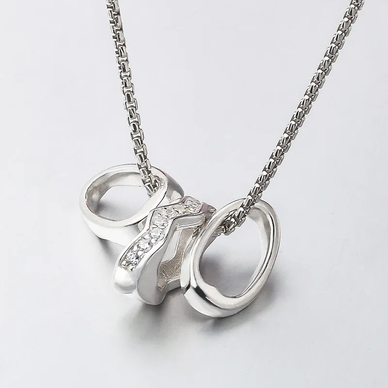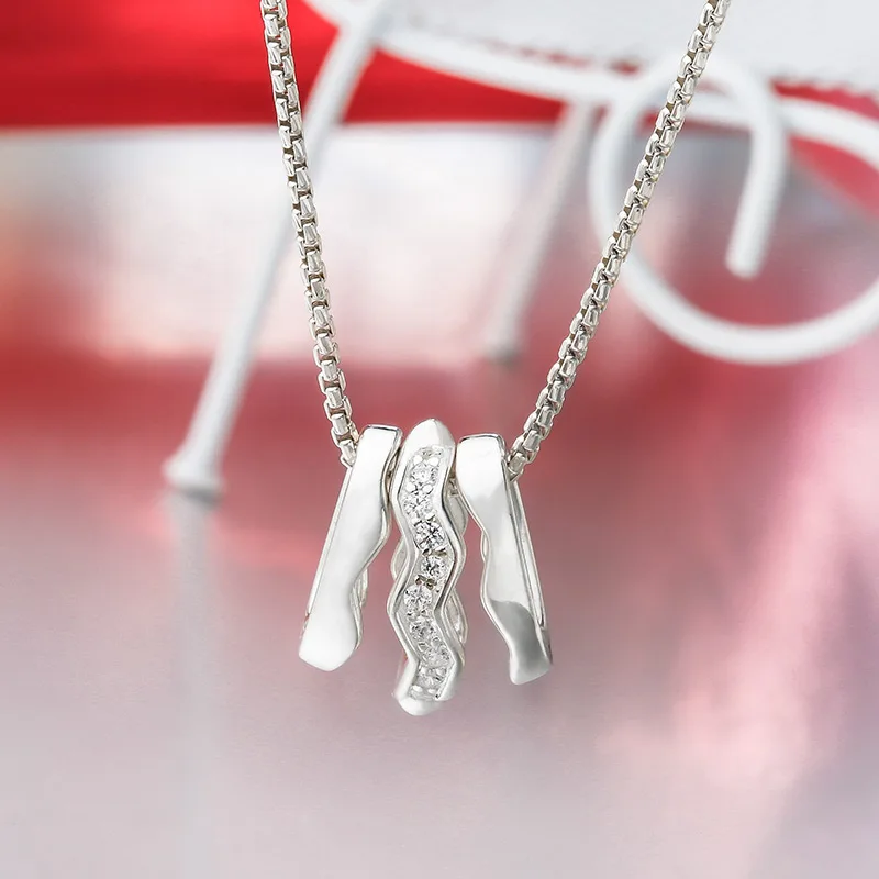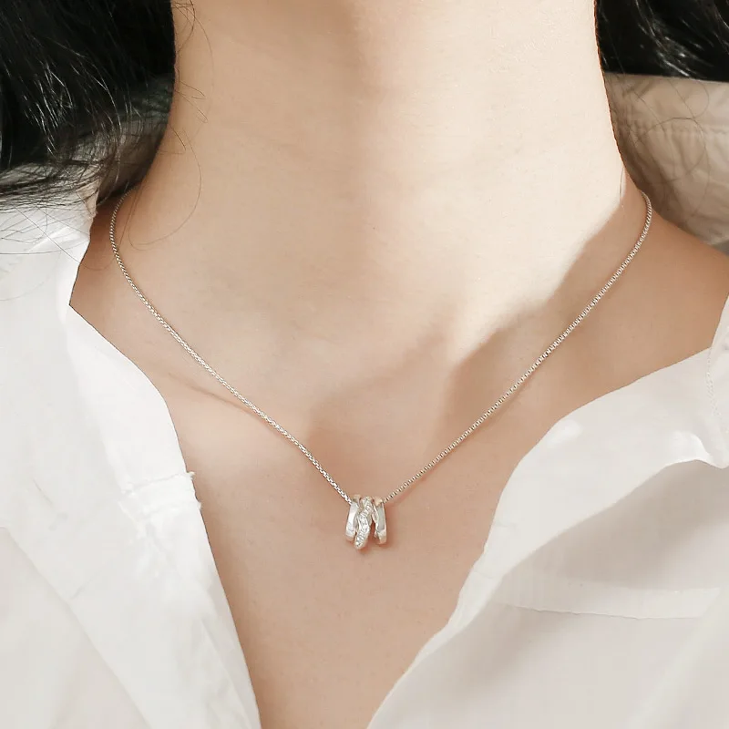 925 Silver Necklace Three Circle Pendant With CZ Pure Silver Jewelry Necklace For Women Best Gift
