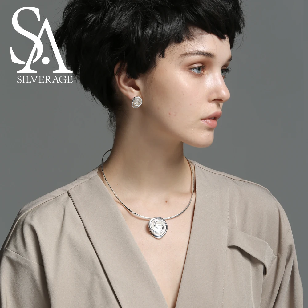 925 Sterling Silver Jewelry Sets for Women Rose Flower Choker Pendant Necklaces Stud Earrings Fine Jewelry
