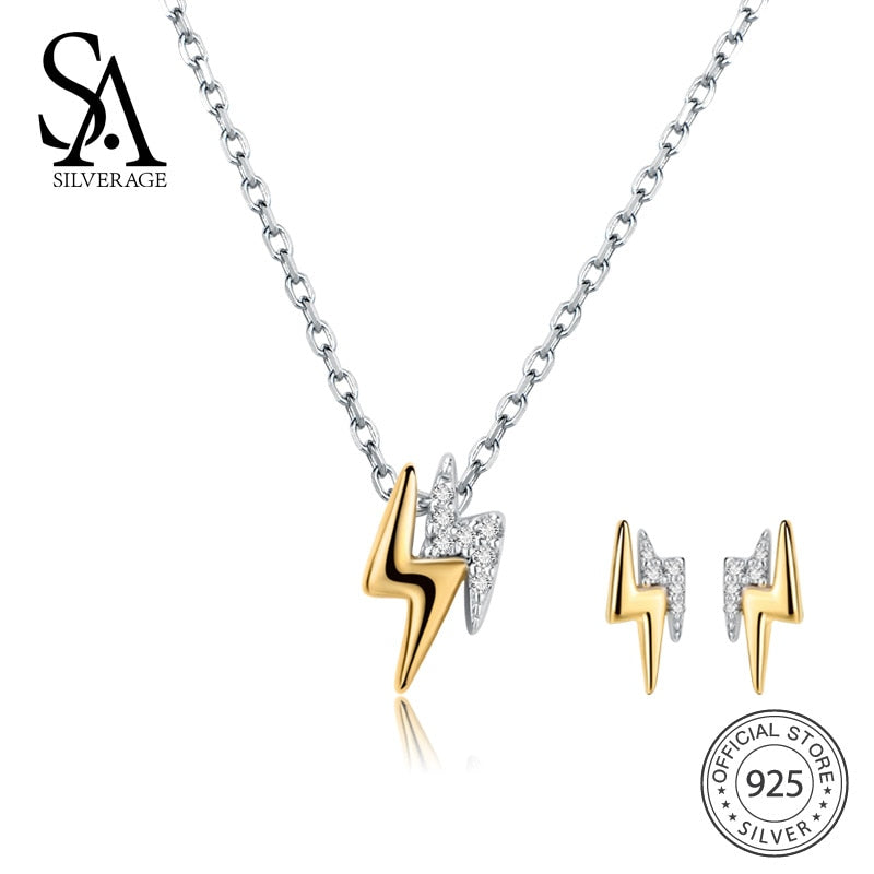 925 Sterling Silver Lightning Stud Earrings Necklaces Jewelry Sets AAA Zirconia 925 Silver Earrings Necklaces Sets