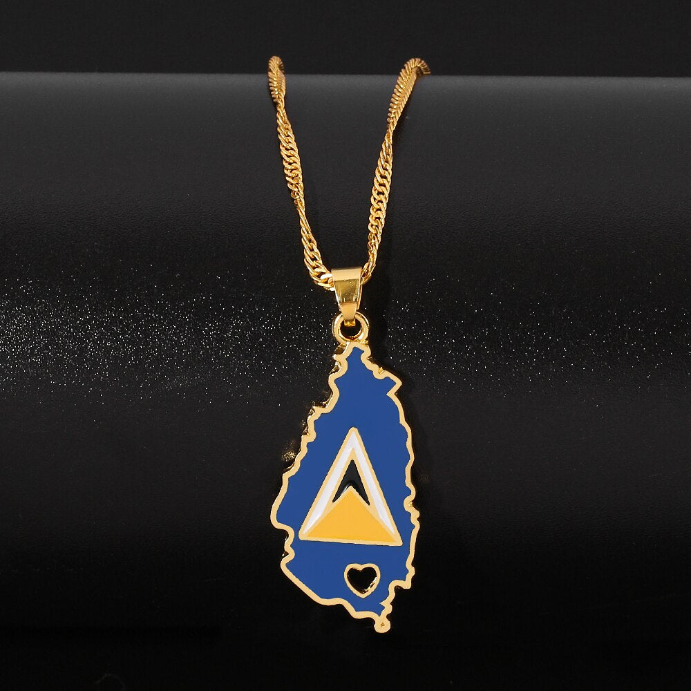 Saint Vincent Antigua Grenada Cameroon Saint Lucia Map Pendant Necklace For Women Men National Flag Item Ethnic Jewelry Gifts