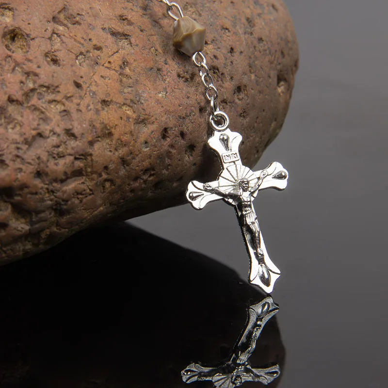 San Martin Catholic Rosary Necklace Tiger Eye Bead Popular In Metal Jewelry Gift