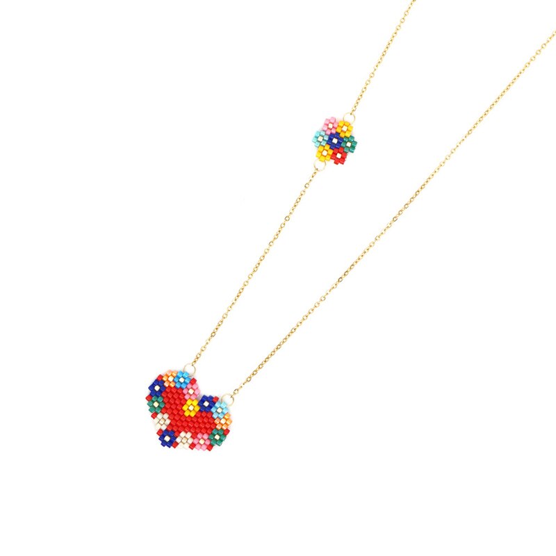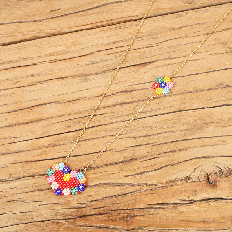 Seed Beads Flower and Heart Choker Pendant Necklace Initial Necklace for Women Handmade Neck Choker Chain 2022 Bohemian Jewelry