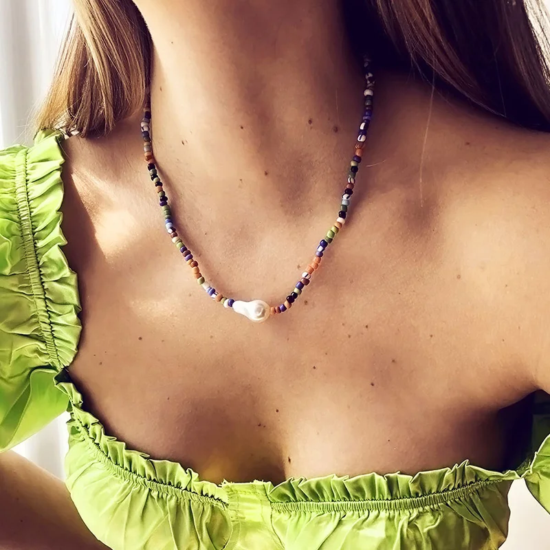 Seed Beads Necklace For Women Trendy Bohemian Colorful Handmade Beaded Choker Female Clavicle Pearl Harajuku Collar Jewelry Gift