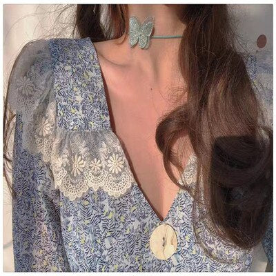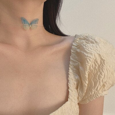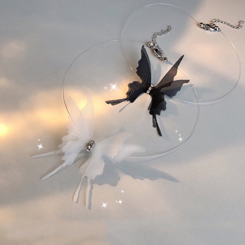 Sexy Black Lace Butterfly Chokers Necklaces for Women Summer White Transparent Chocker Club Party Jewelry New