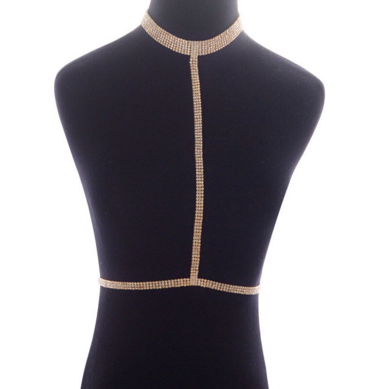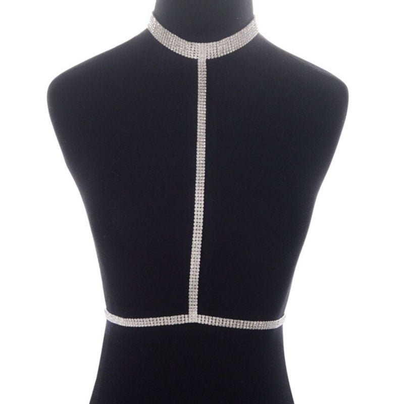 Sexy Body Chain Rhineston Necklace Statement Jewelry Flower Summer Boho Brassiere Women Night Club Gift 2022