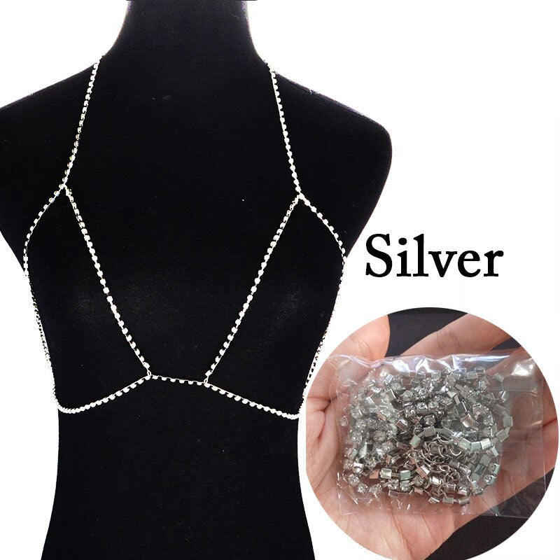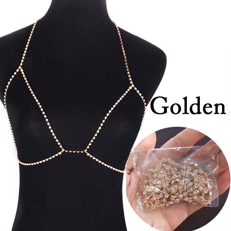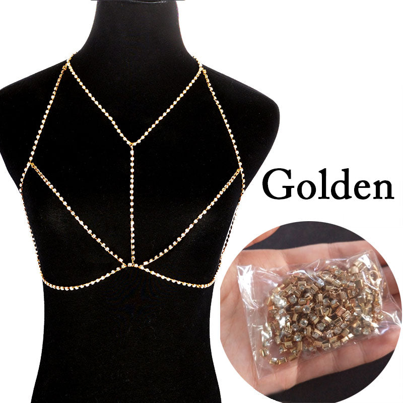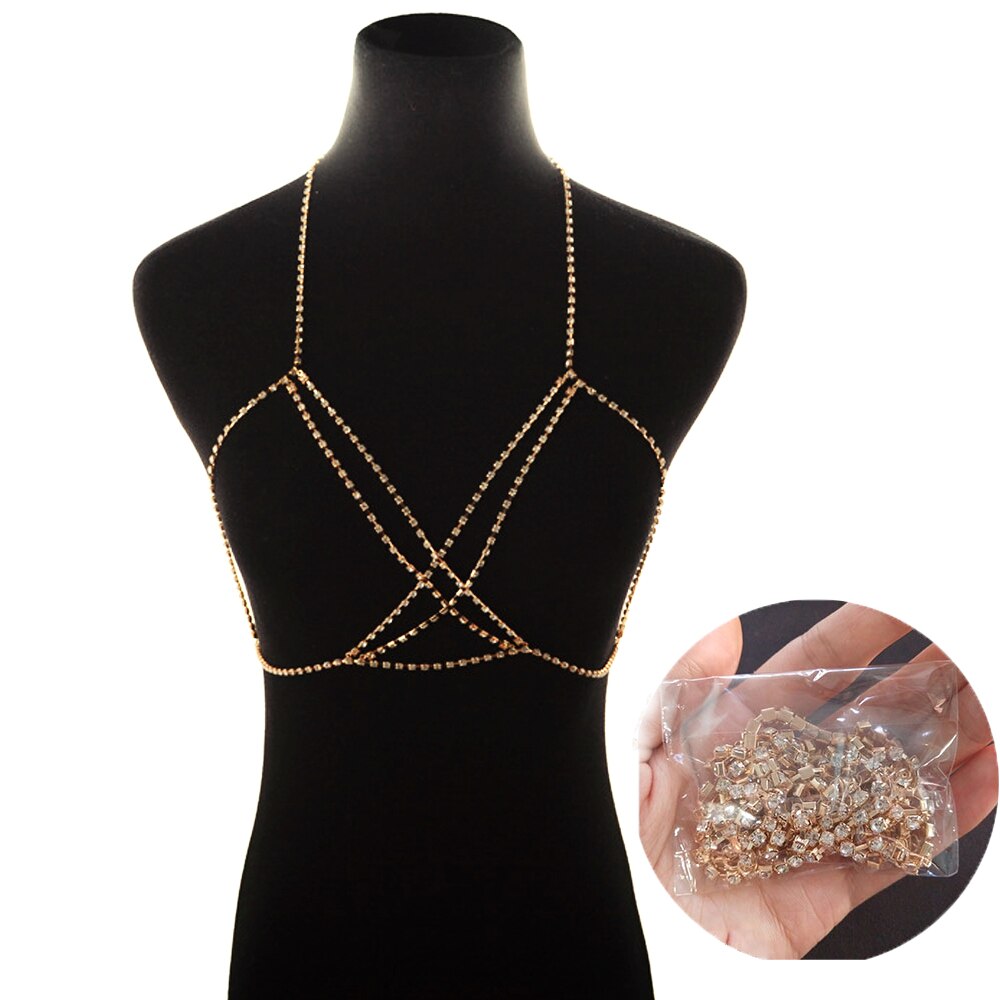 Sexy Crystal Bra Body Chain Bikini Twisted Necklace for Women Rhinestone Cross Belly Body Jewelry Chest Chain Jewelry Accessory