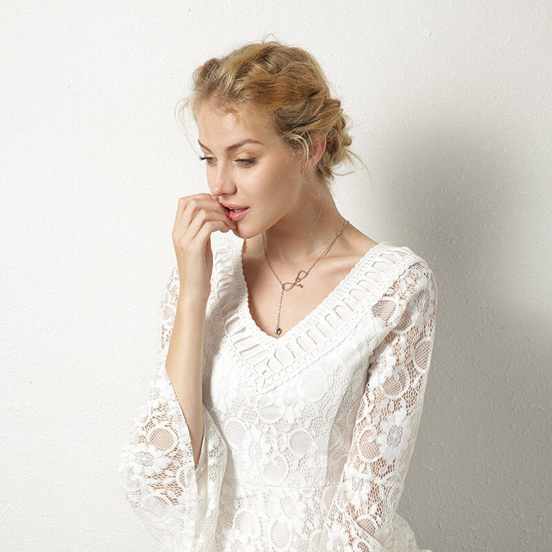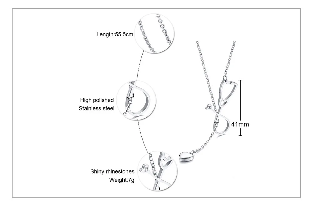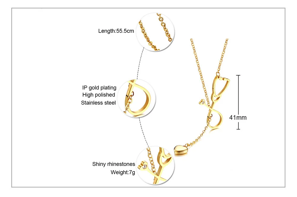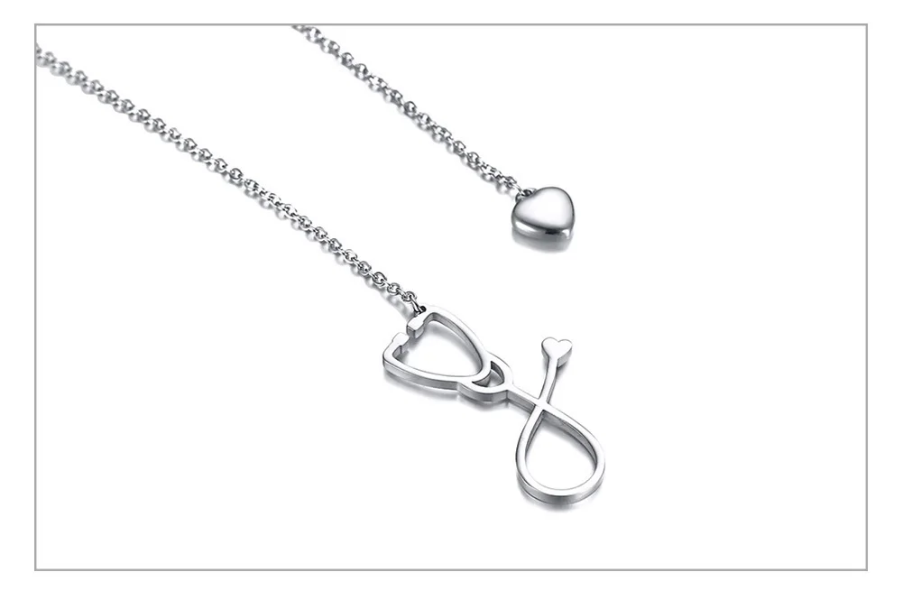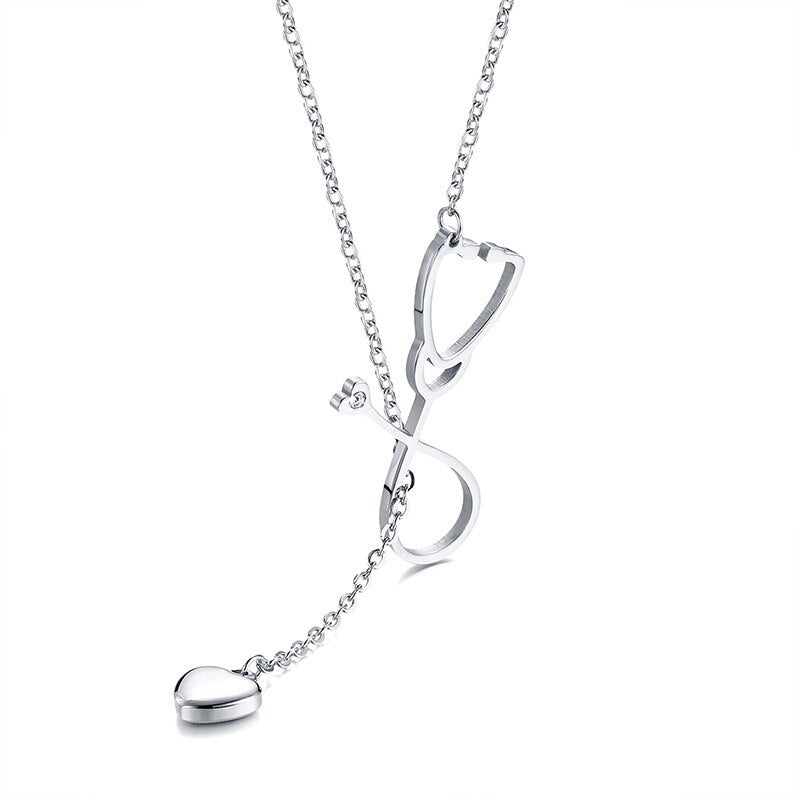 Sexy Heart Charm Stethoscope Hoop Closure Necklace for Women Stainless Steel Pendant Elegant Female Lady Party Jewelry