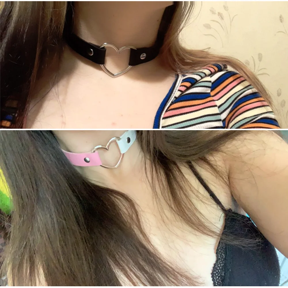 Sexy Trendy Vintage Charm Round Gothic Collar Necklaces Jewelry Gift Gothic Leather Heart Harajuku Women Punk Choker Necklace