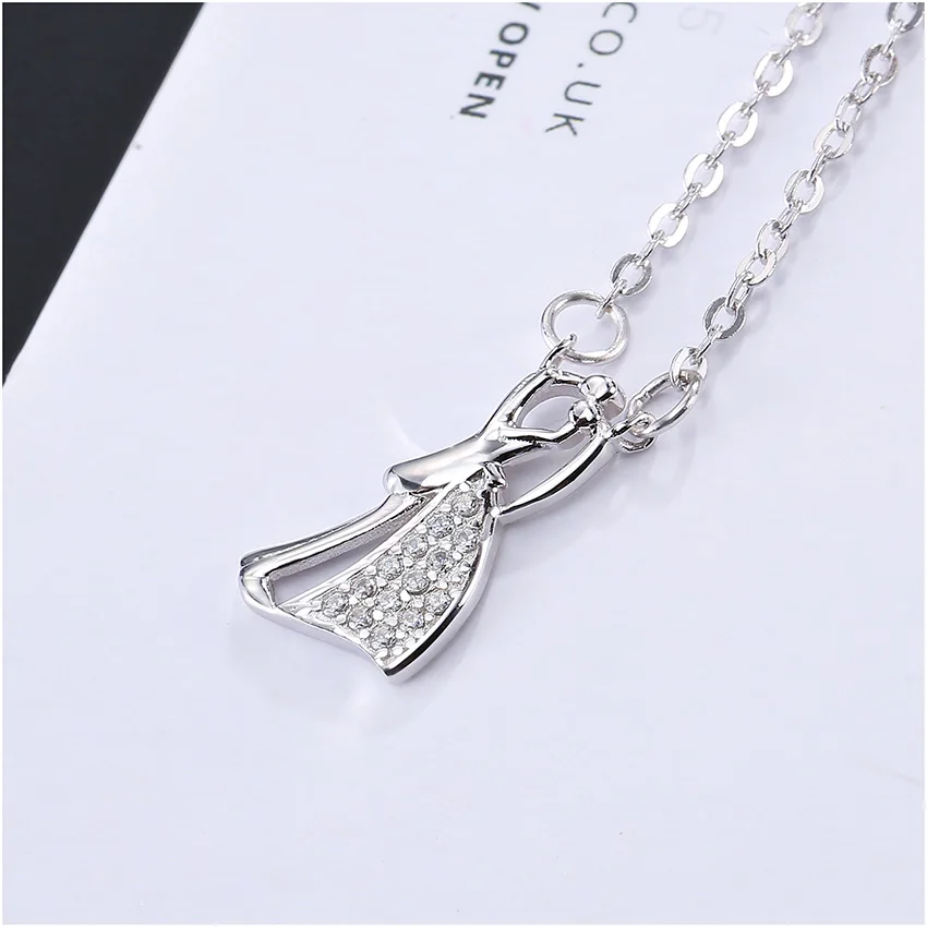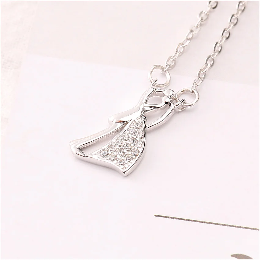 100% 925 Sterling Silver Jewelry Romantic Propose Marriage Love Bride & Groom Necklaces & Pendants for Women Wedding