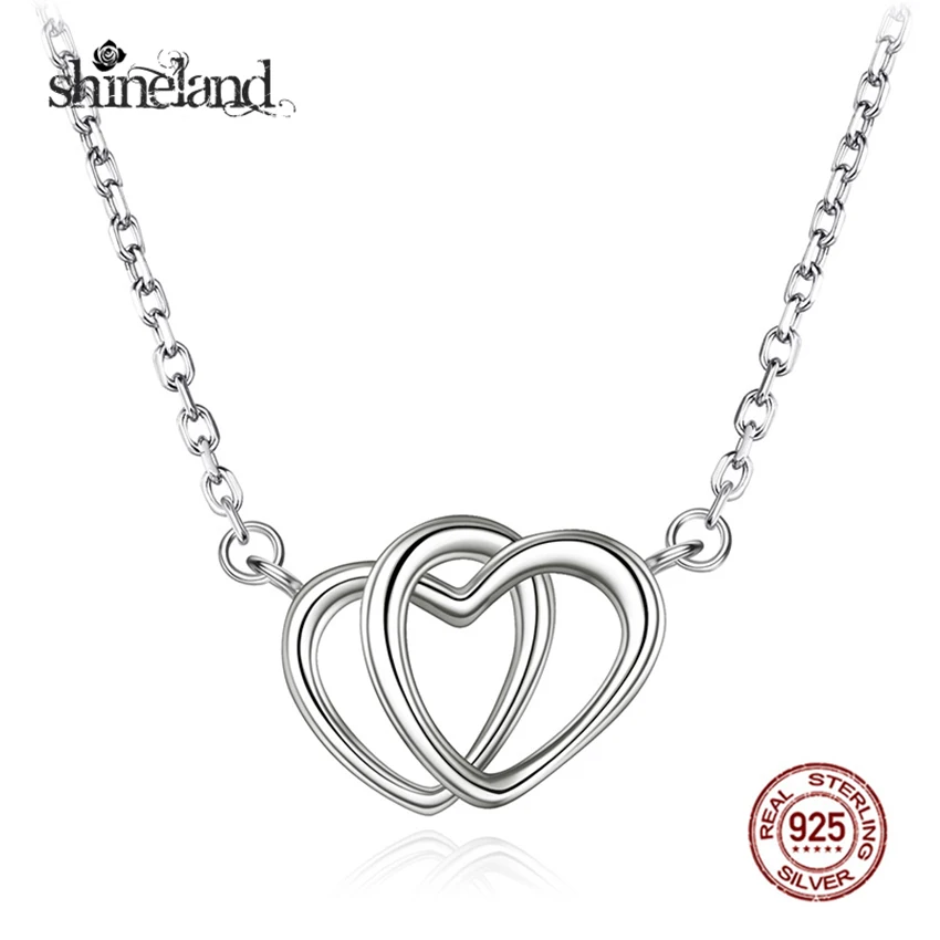 2020 New Fashion Double Love Heart Necklaces&Pendants 925 Sterling Silver Necklaces for Women Collares Populares Jojas