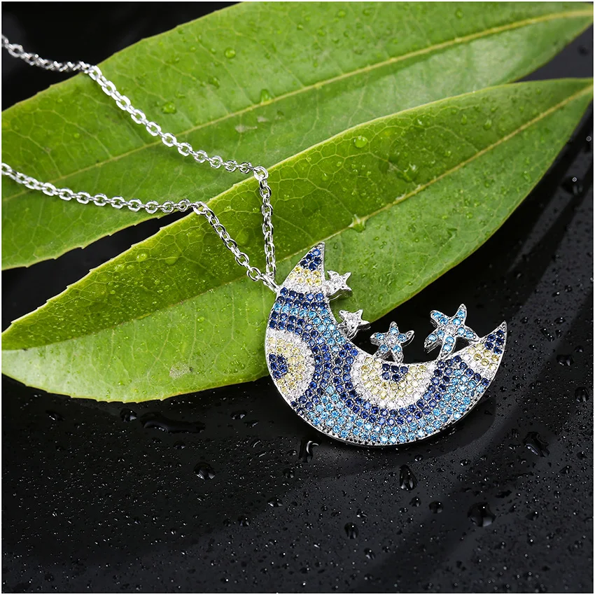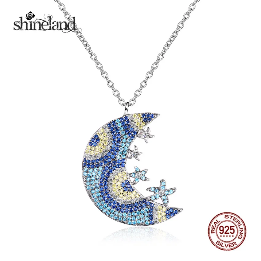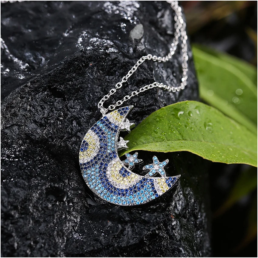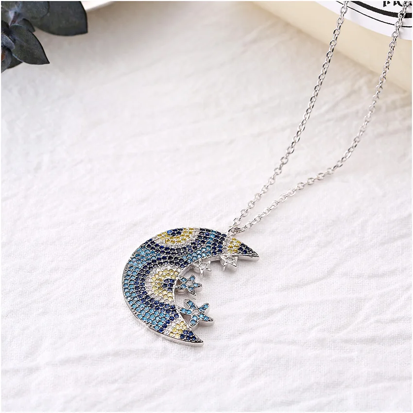 Delicate Women Lady Girl 925 Sterling Silver Multicolor Star Moon Pendants&Necklaces Fashion sterling-silver-jewelry