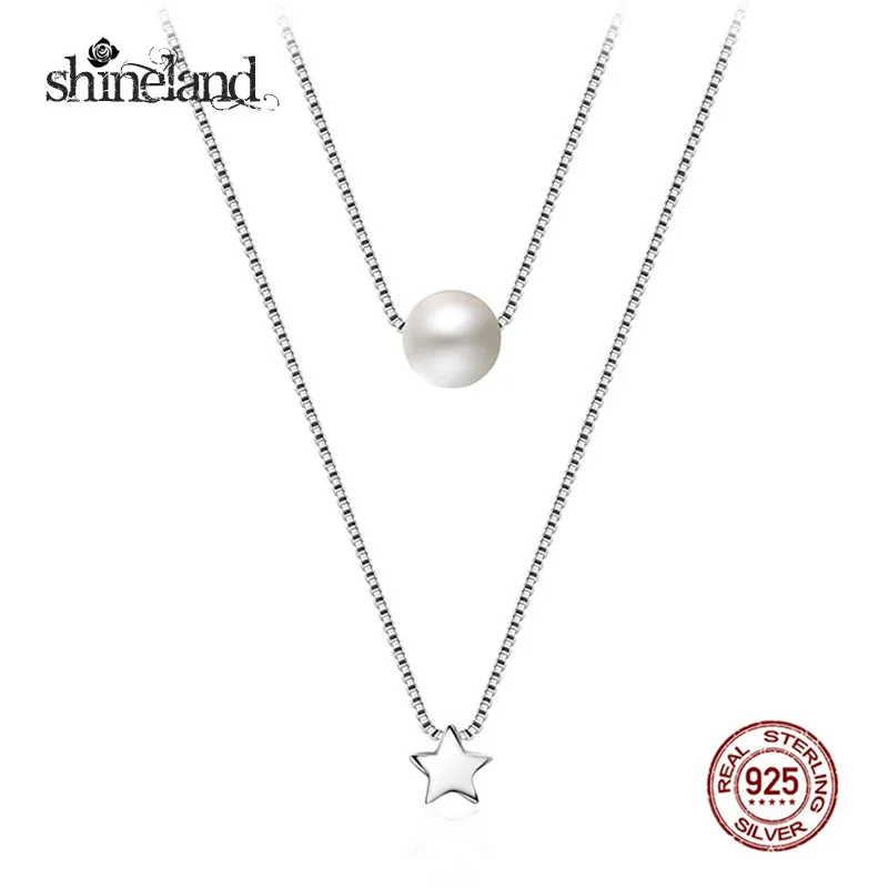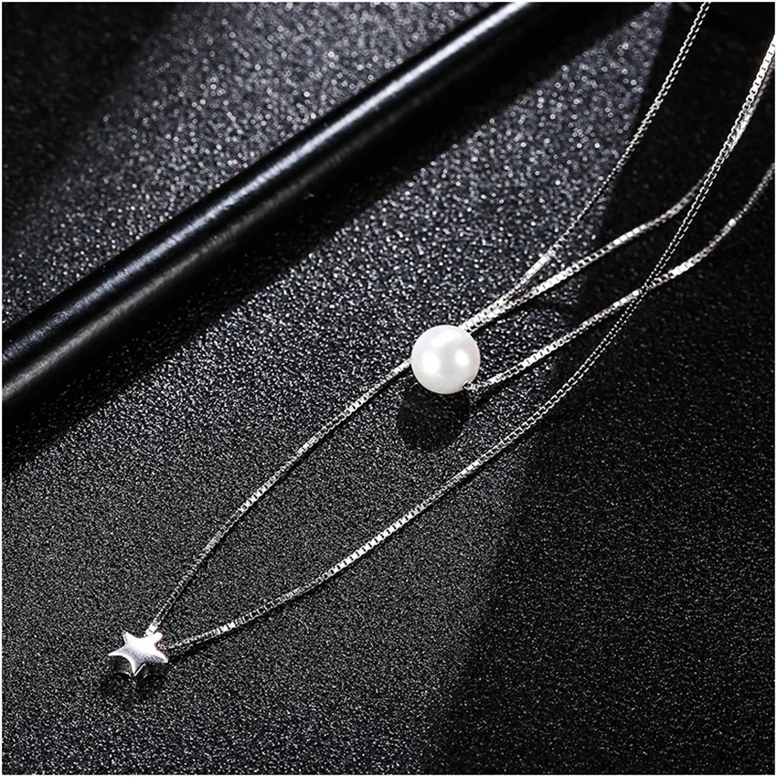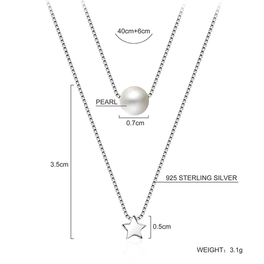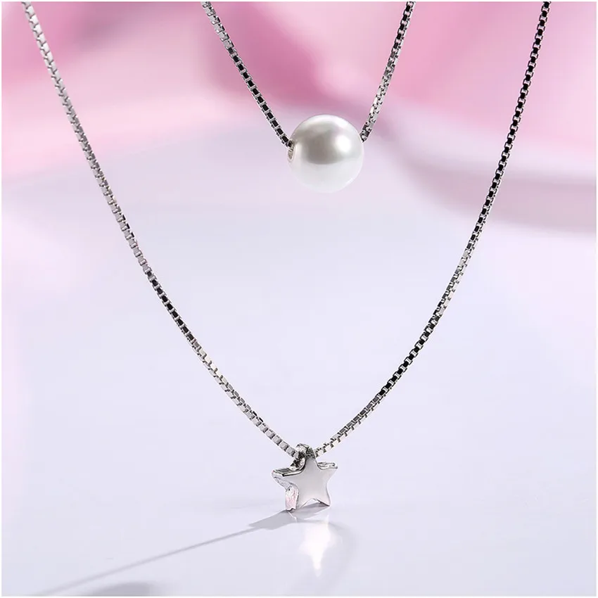 New Fashion Multiple Layers Clavicle Double Box Chain Star&Pearl Pendants Necklaces for Women 925 Silver Fine Jewelry