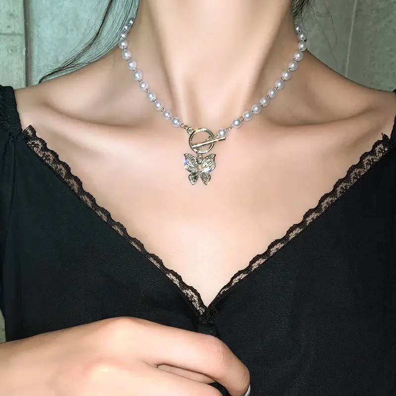Shiny Zircon Butterfly Pendant Choker Light Aesthetic Niche Clavicle Silver-plated Necklace Jewelry Women