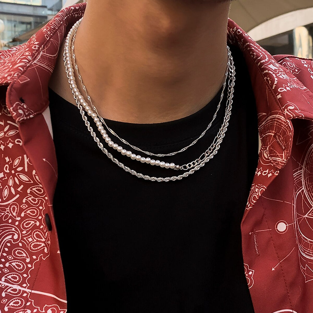 Model Number : Pearl Beads Thick Link Chain Choker Necklace Set Men/Women