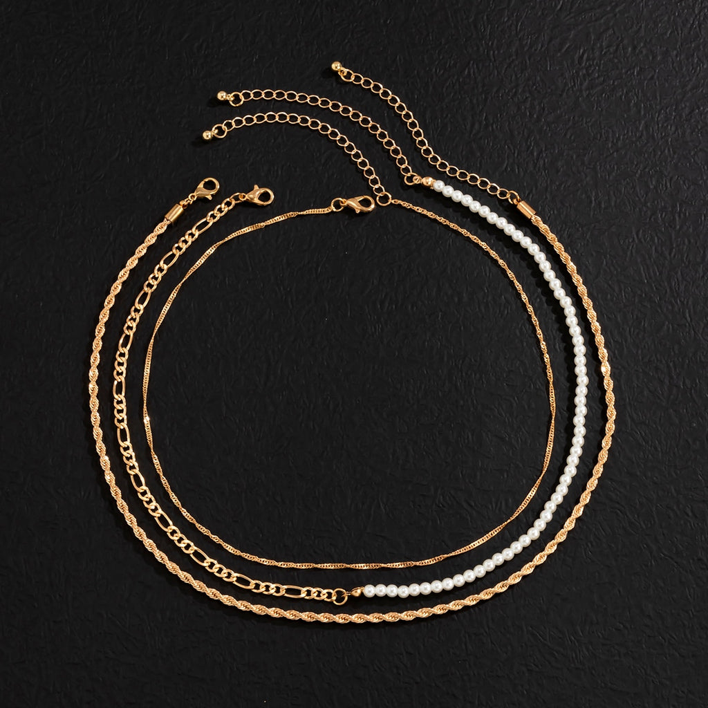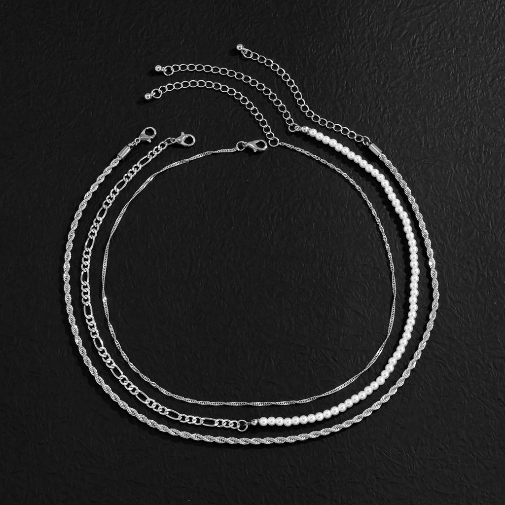 SHIXIN Asymmetry Pearl Beads Thin Link Chain Choker Necklace Set Men/Women Punk Multi Layered Necklace Chain on the Neck Jewelry