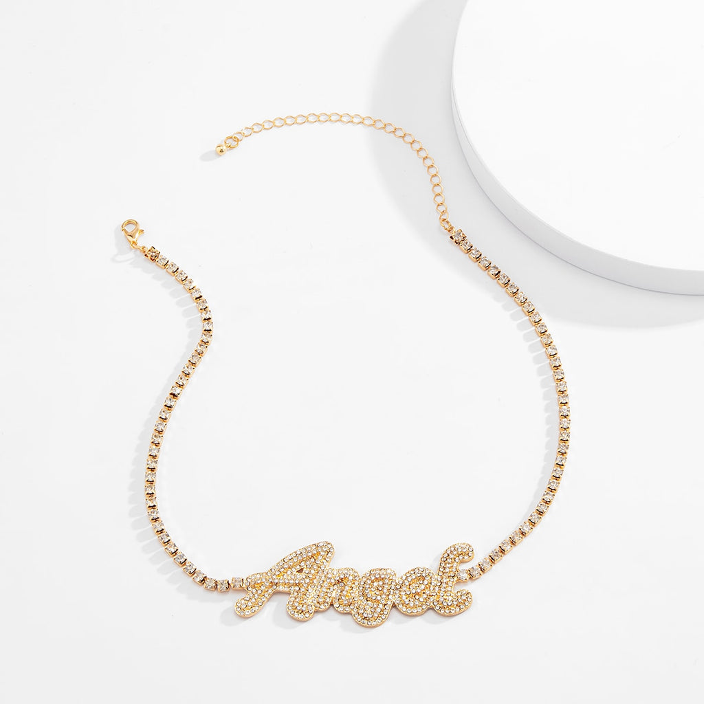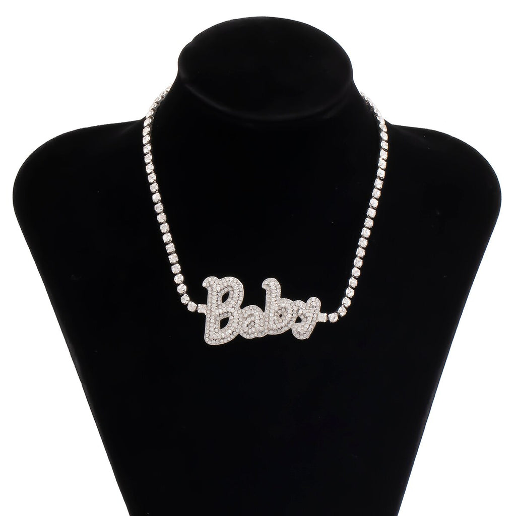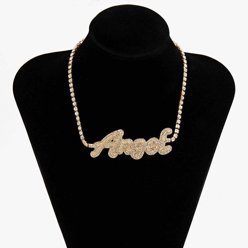 Type : Iced Out Crystal Baby/Angel Letter Necklaces on the Neck