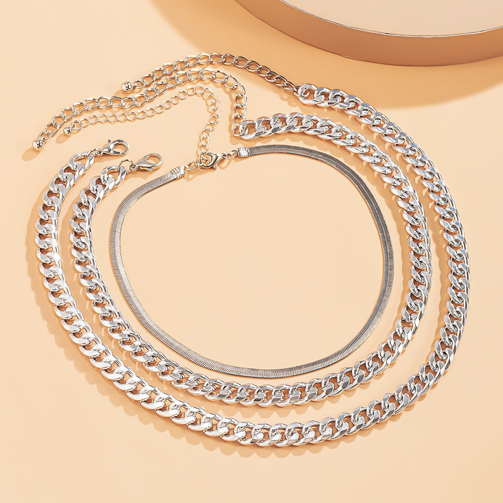 Color : Gold/Silver Color Multi Layer Chain Chunky Necklace Women