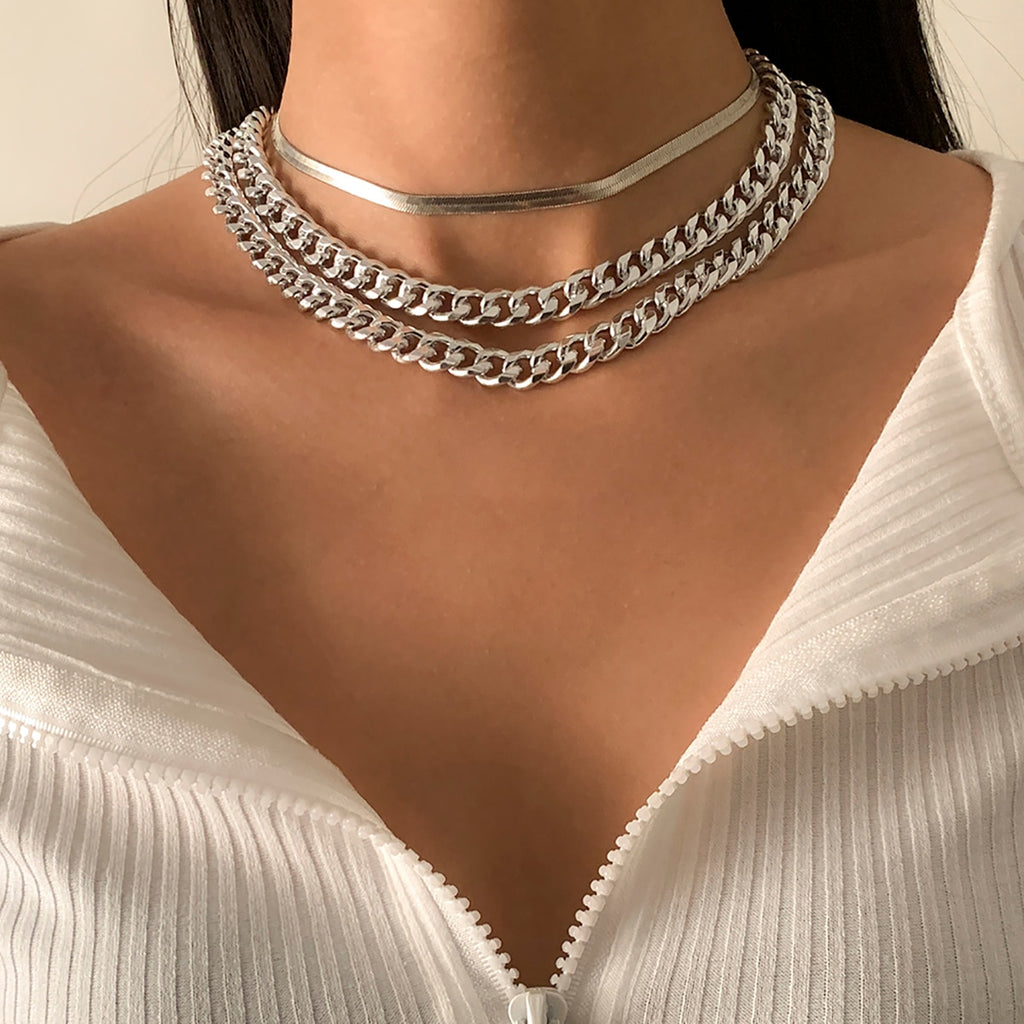 SHIXIN Layered Thick Link Chain Necklace for Women Hip Hop Snake Chain Chunky Choker Necklaces on the Neck Jewelry Gifts