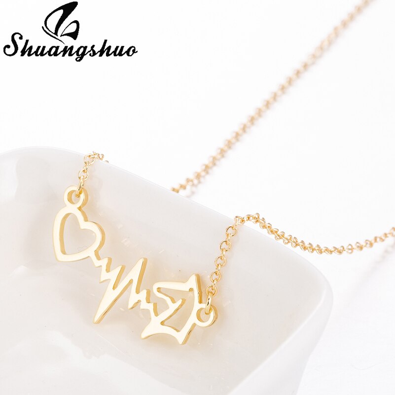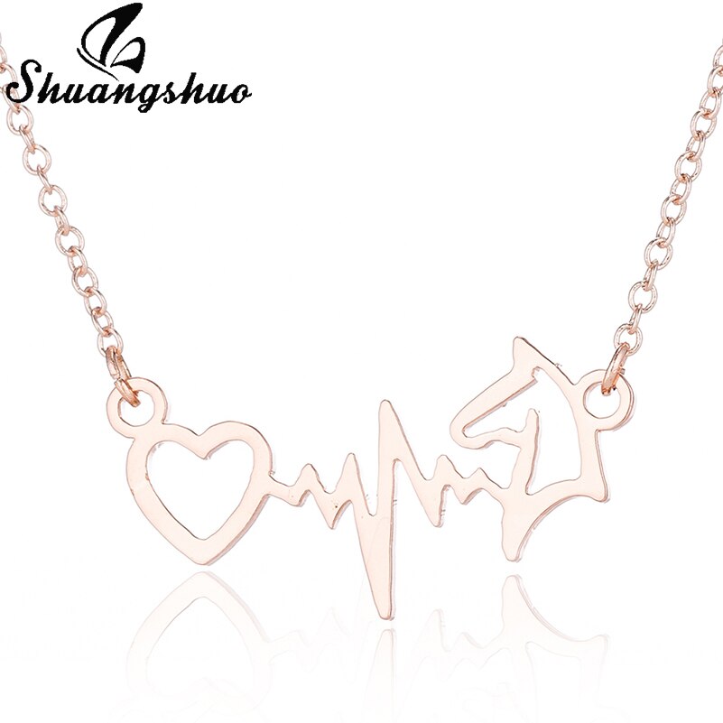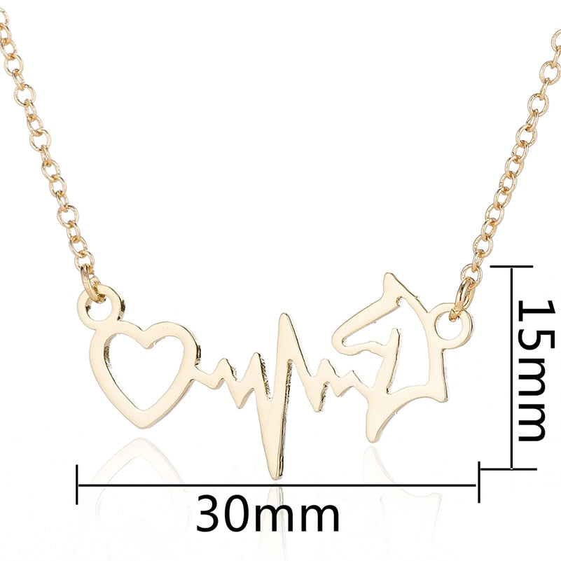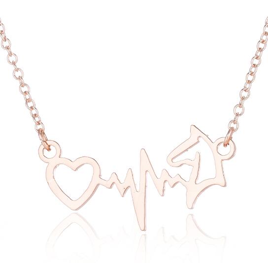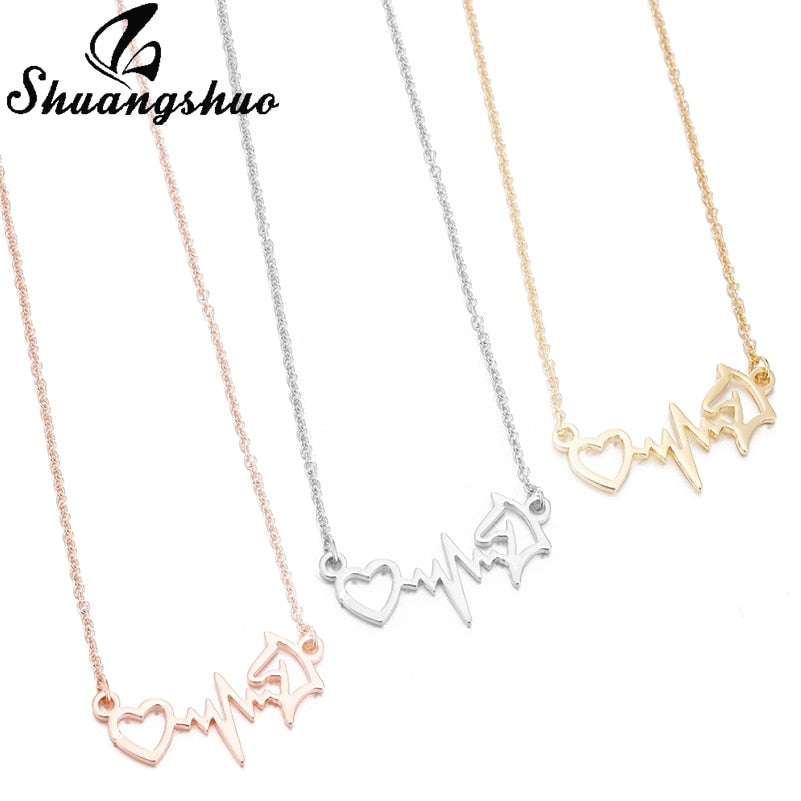 Shuangshuo Simple Electrocardiogram ECG Horse Head Pendant Necklaces for Women Animal Heart Heartbeat Necklace Chocker Jewelry