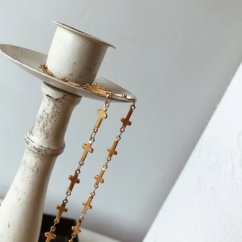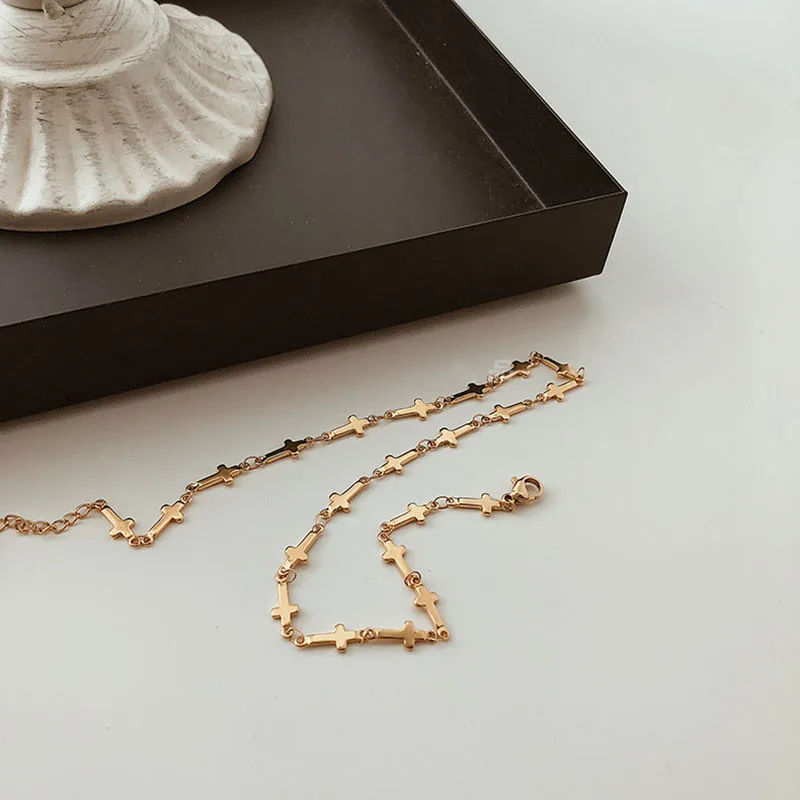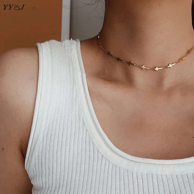 Sideways cross choker necklace for women gold stainless steel collar clavicle necklace dainty elegant minimalist women fashion