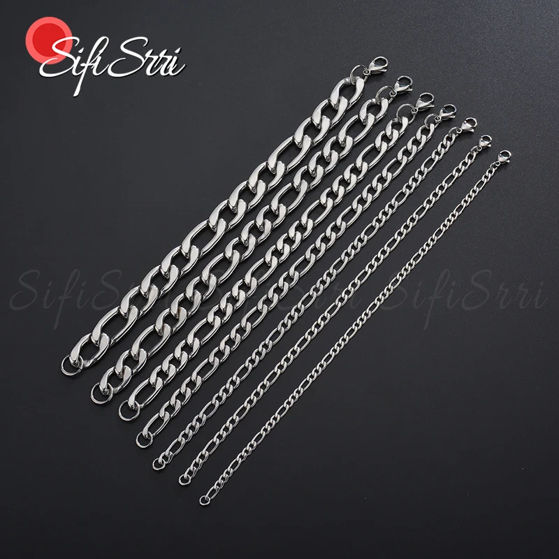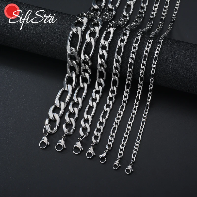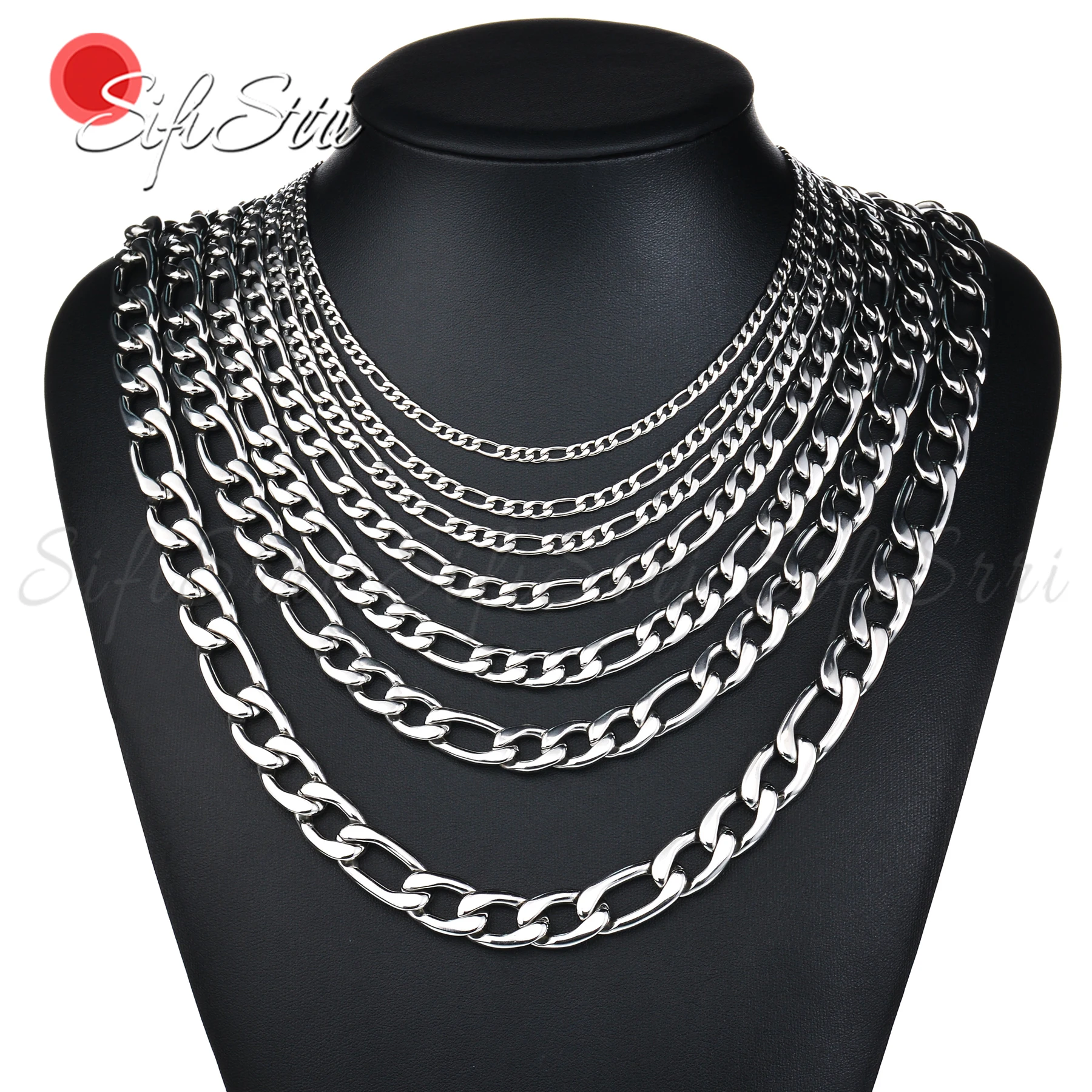 Sifisrri Punk Men 5/9/13mm Stainless Steel Three to One NK Chain Necklace Silver Color Solid Chains Unisex Wrist Jewelry Gift
