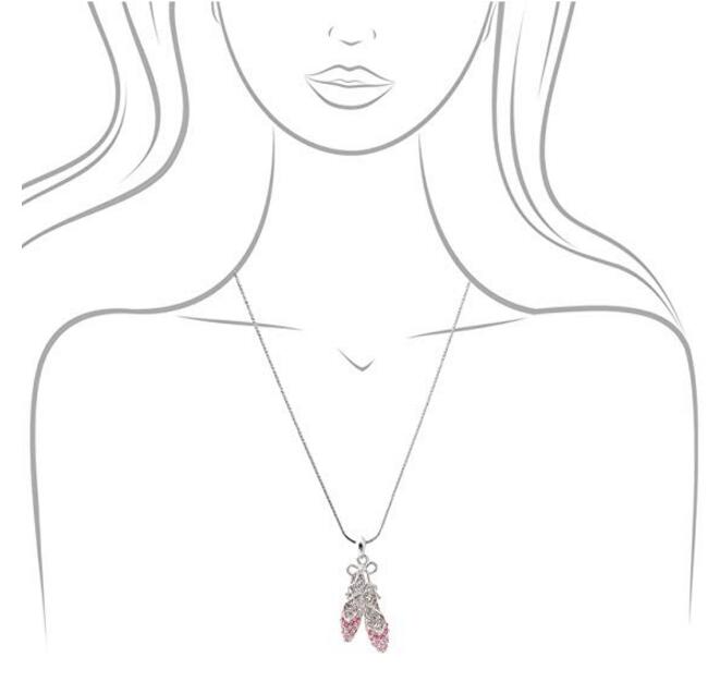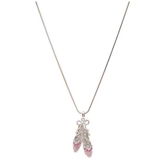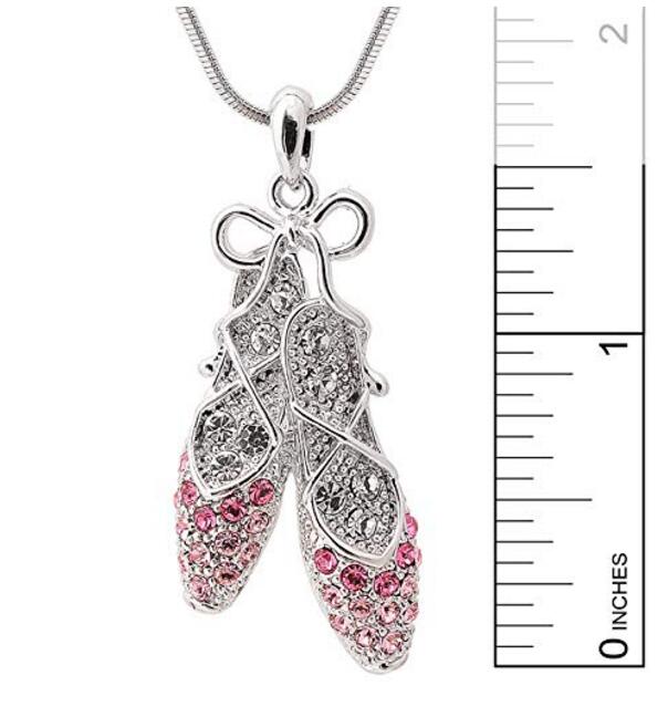 Silver Plated Pink Crystal Ballet Slipper Shoe Necklace Gift for Girls