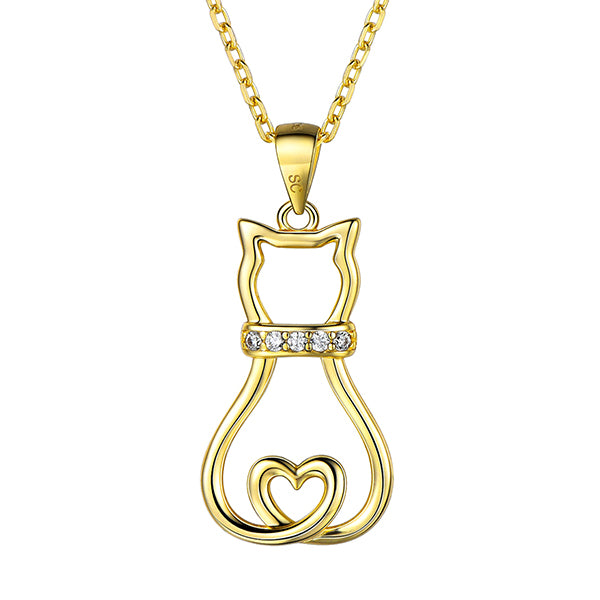 100% Real 925 Sterling Silver Cat Pendant Necklace & Chain Women Fine Jewelry Cute Animal Crystal Necklaces SCP6001B