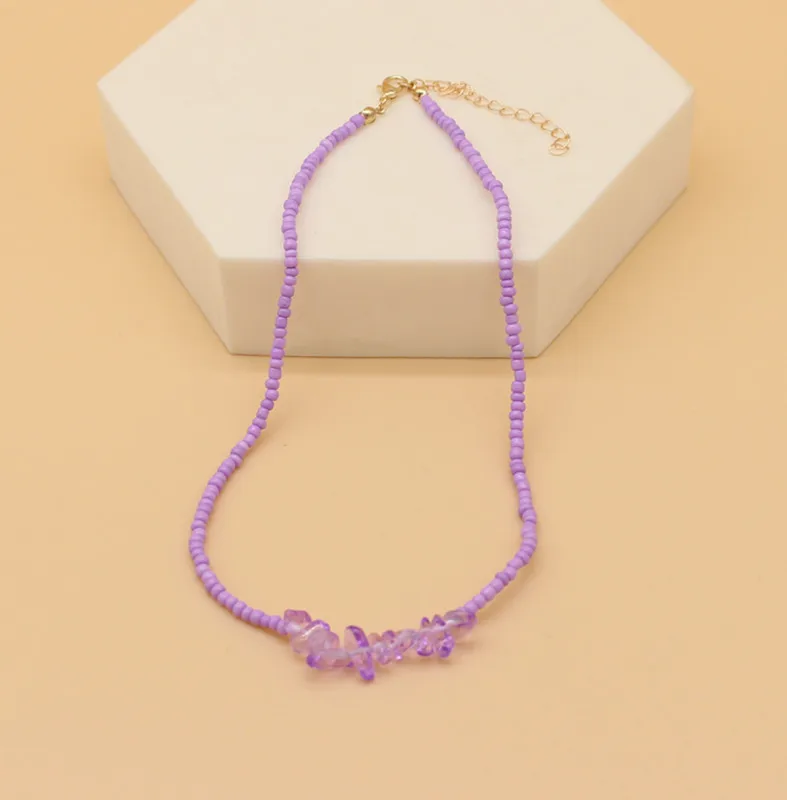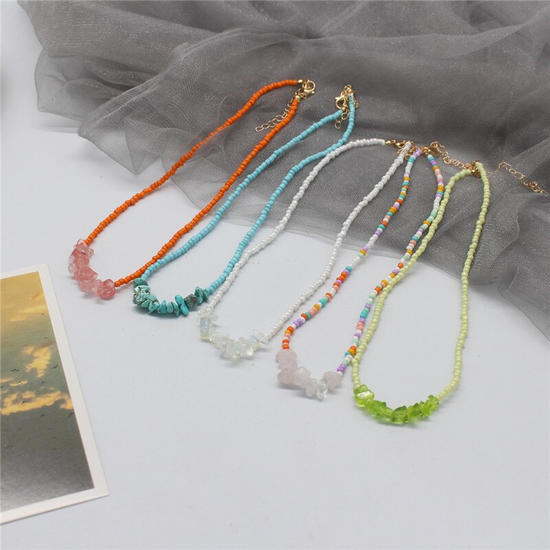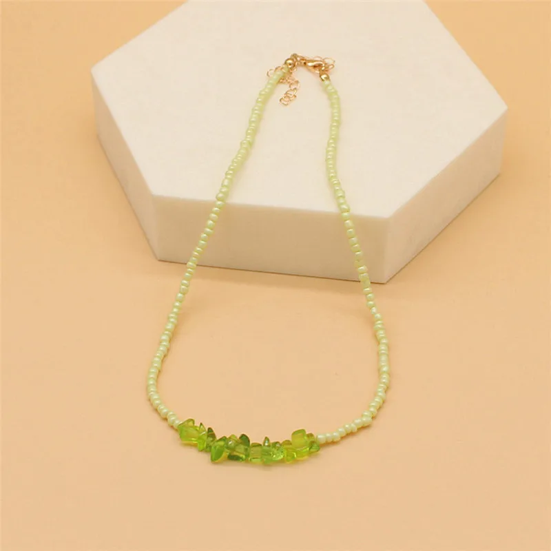 Simple Choker Necklace Seed Beads Irregular Crystal Stone Pendant Collar Women Girl Handmade Gift Jewelry